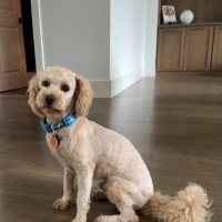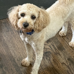 Hi there! My name is Saint Andrews, but my foster family calls me “Stanley” or “Stan the Man” — and I kind of like that. I’m a one-year-old Cockapoo mix with a soft, curly coat and a heart that’s learning to be brave. I weigh just 17 pounds, which makes me the perfect size for lap snuggles — my favorite place to be. I’m a gentle soul who prefers the quiet comfort of your company. I may be shy at first, but once I feel safe, I’ll happily follow you from room to room and curl up beside you for a cozy nap.
