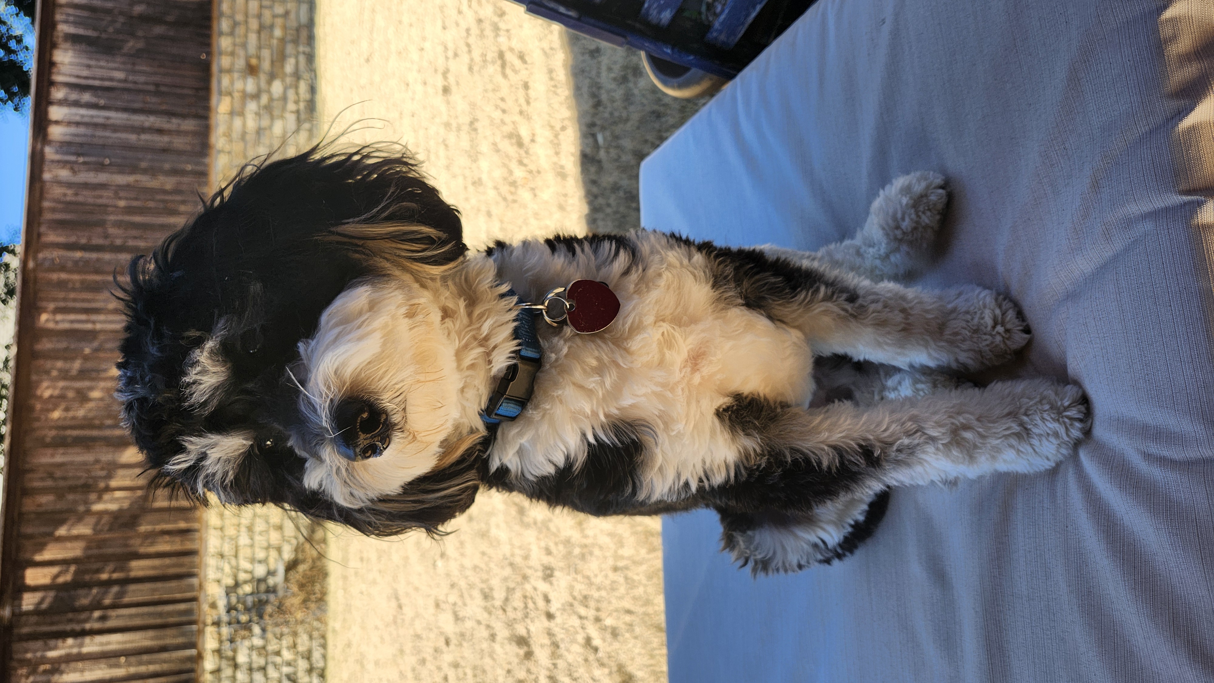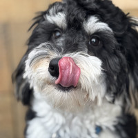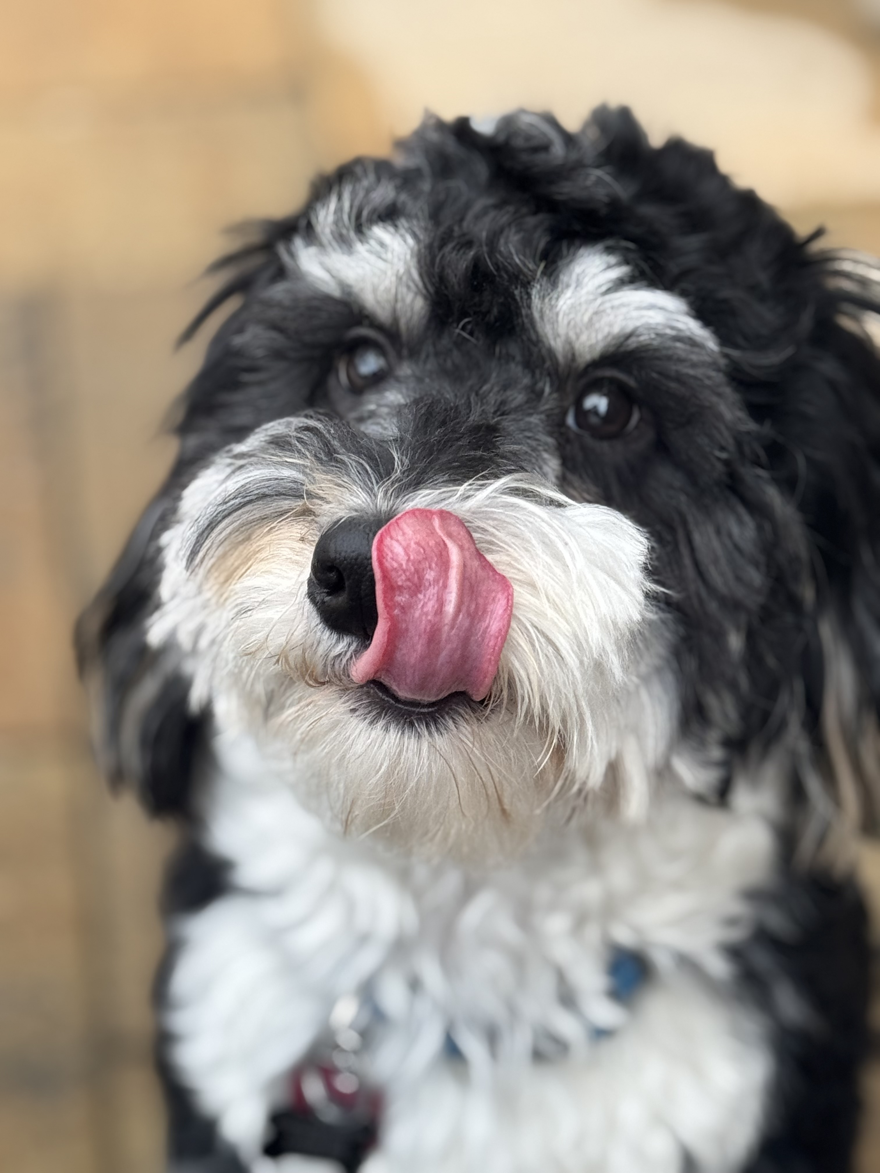 Hi, I’m Stanley — a 24-pound bundle of Mini Bernedoodle joy, sass, and a whole lotta love. At just 1 year and 2 months old, I’m still sporting some classic puppy quirks, but hey, that’s part of my charm! I’ve been told I’m hilarious, full of energy, and the most affectionate little guy you’ll ever meet. Fetch? Obsessed. Chew bones? Absolutely. Following my foster mom around like a loyal shadow? You bet.