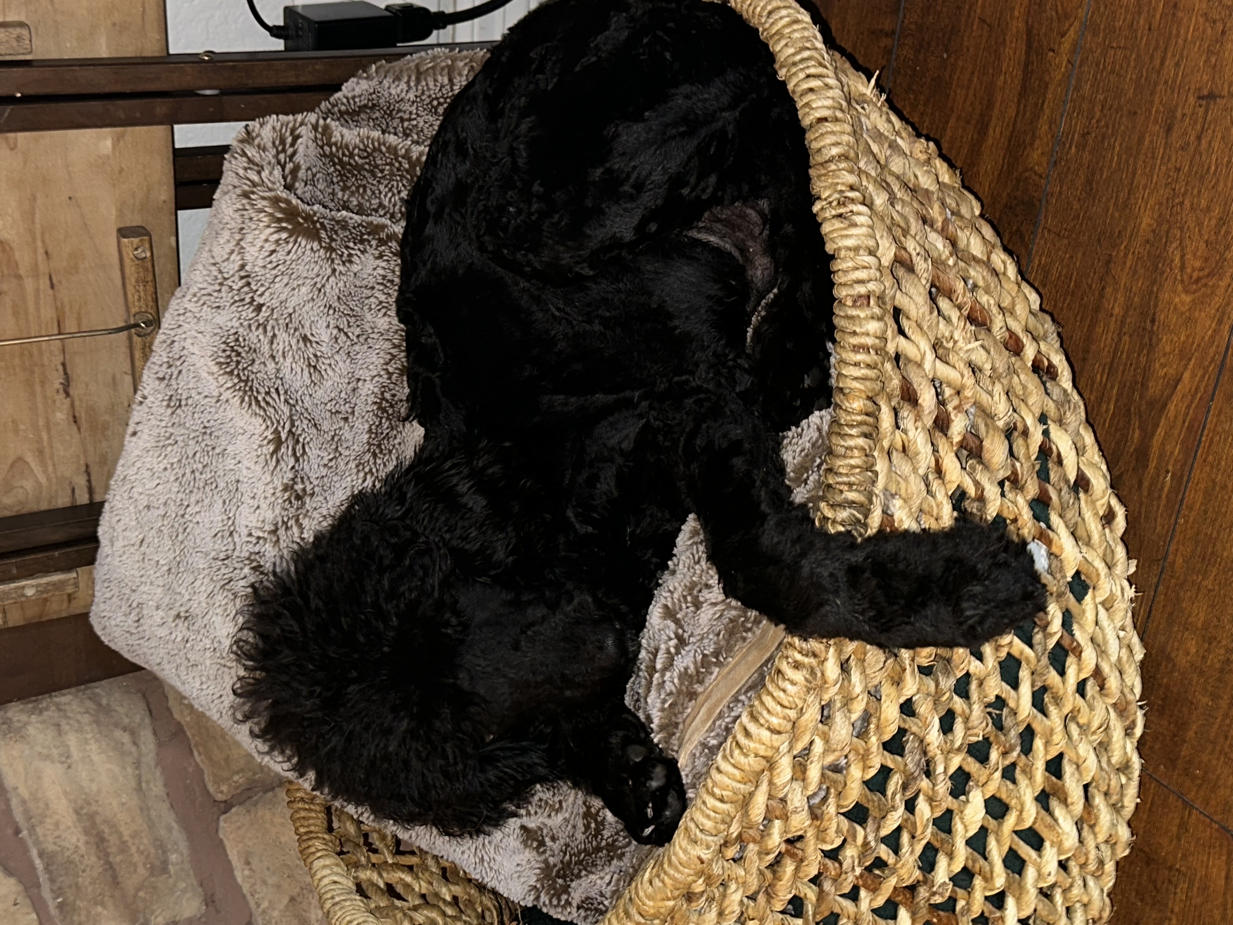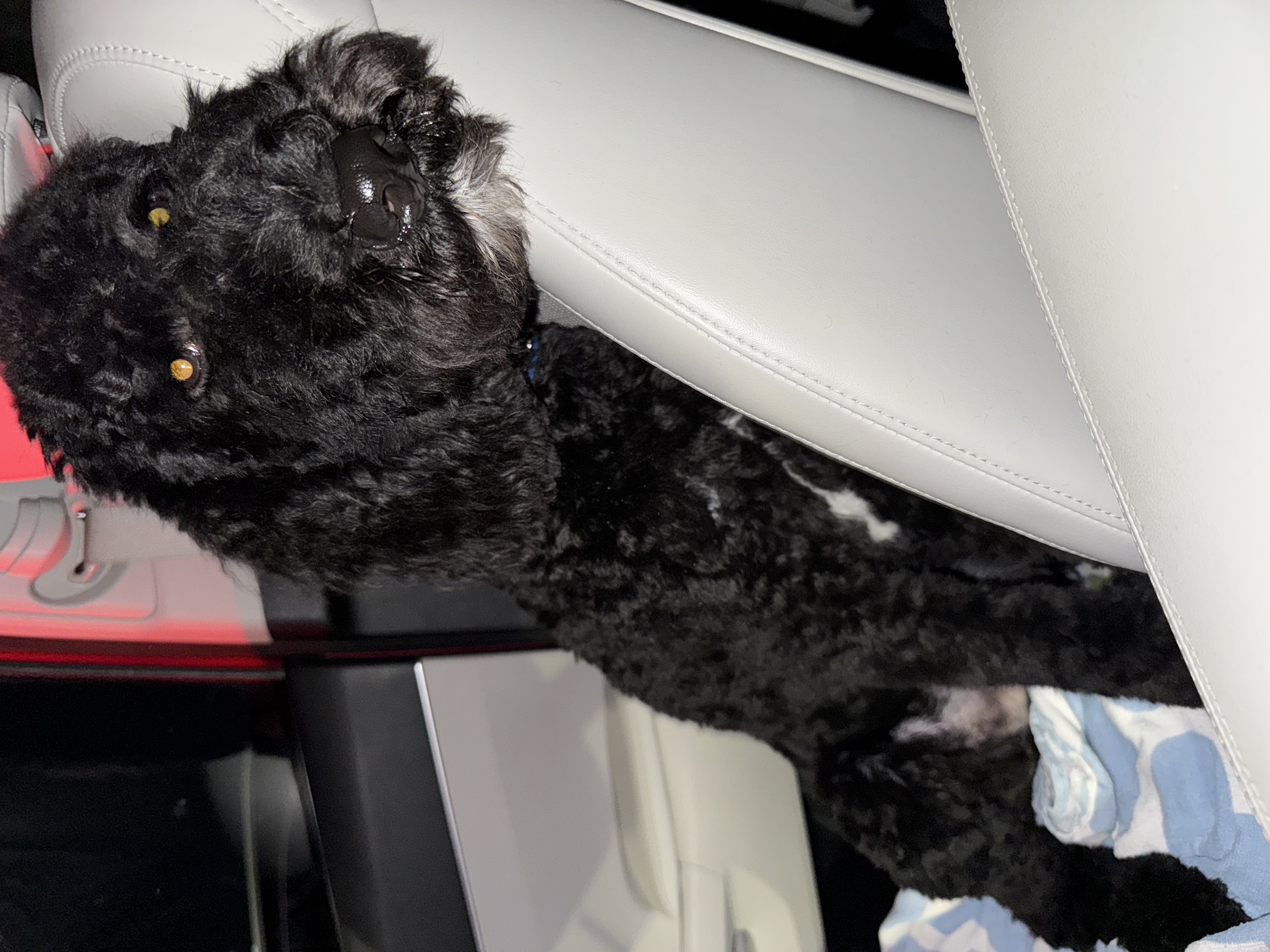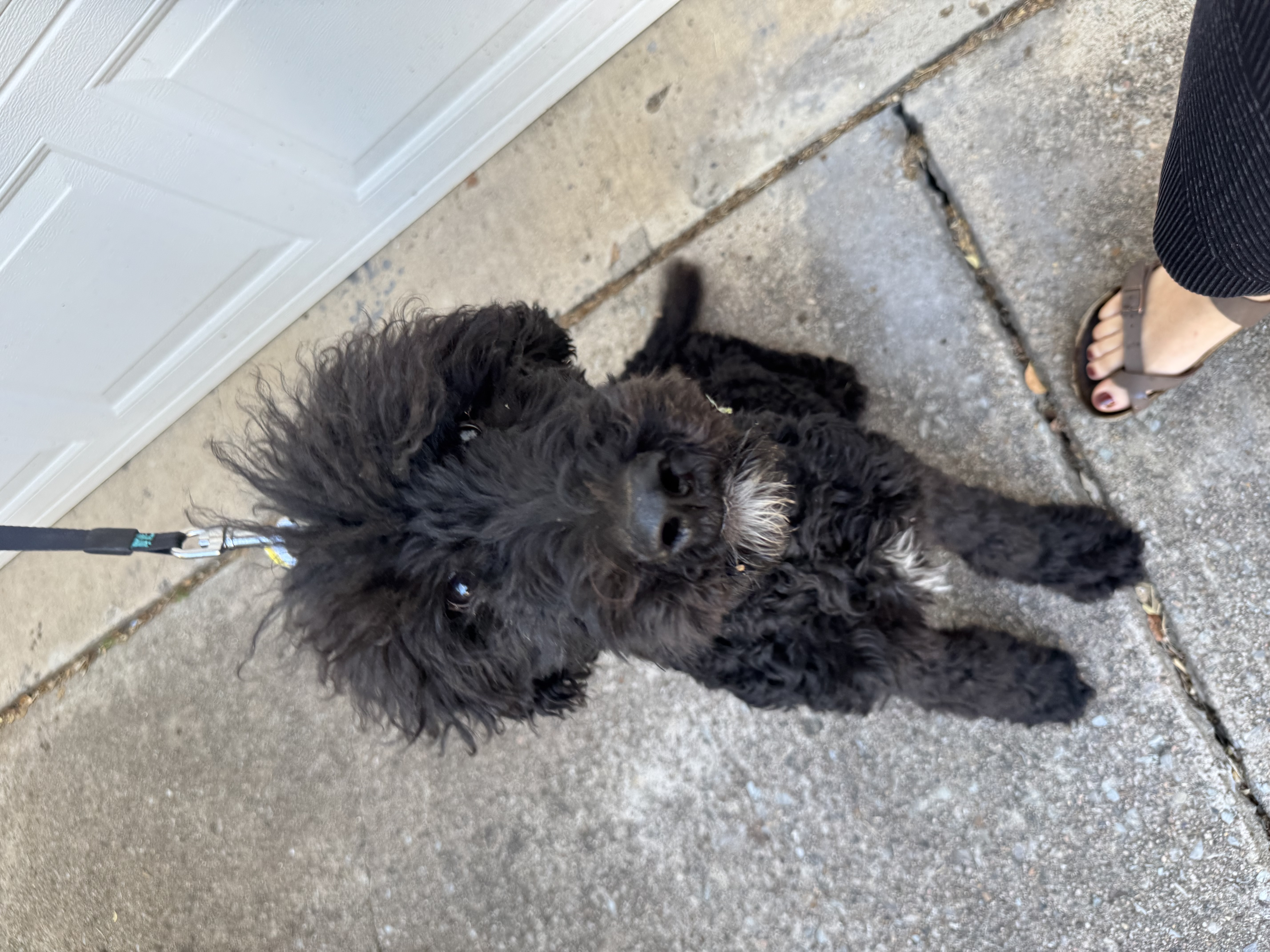 Hi there, I’m Starsky! I’m a 6-month-old standard black poodle with a little white patch on my chest – pretty stylish, huh? I’m around 25 pounds now, but my foster mom says I’m growing fast and will be a tall boy!