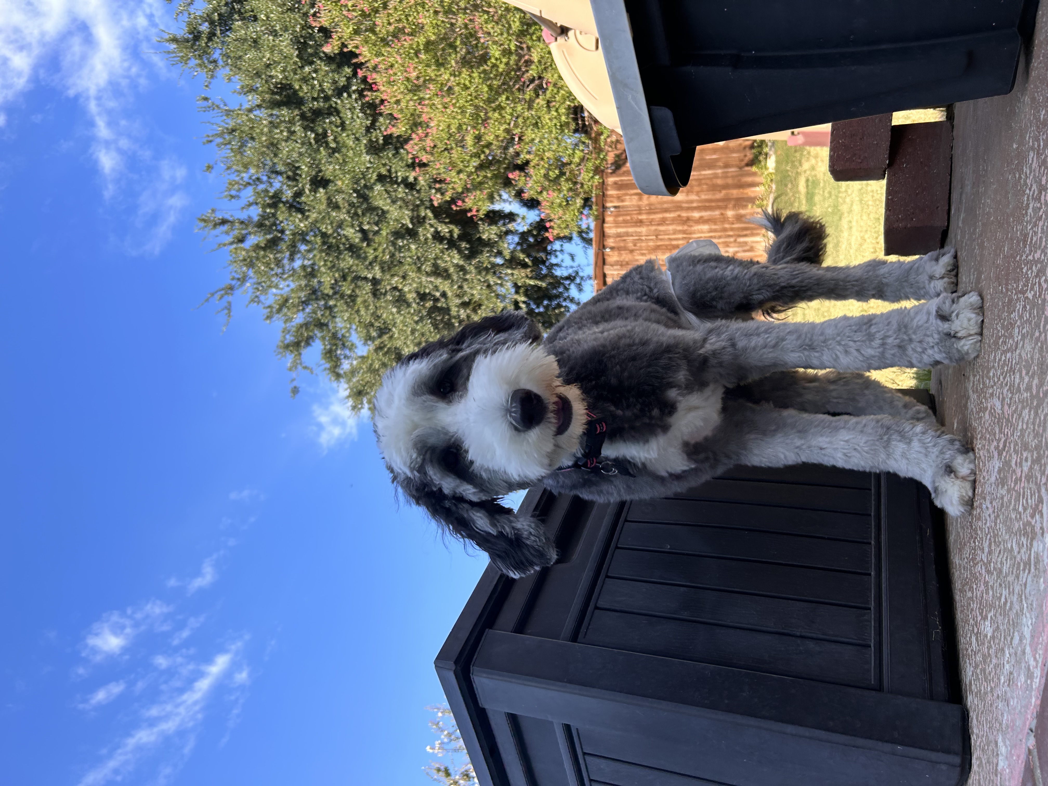 Hi! My name is Stella. I am an 8 month old, 40lb, Female Sheepadoodle ready to join my fur-ever home!