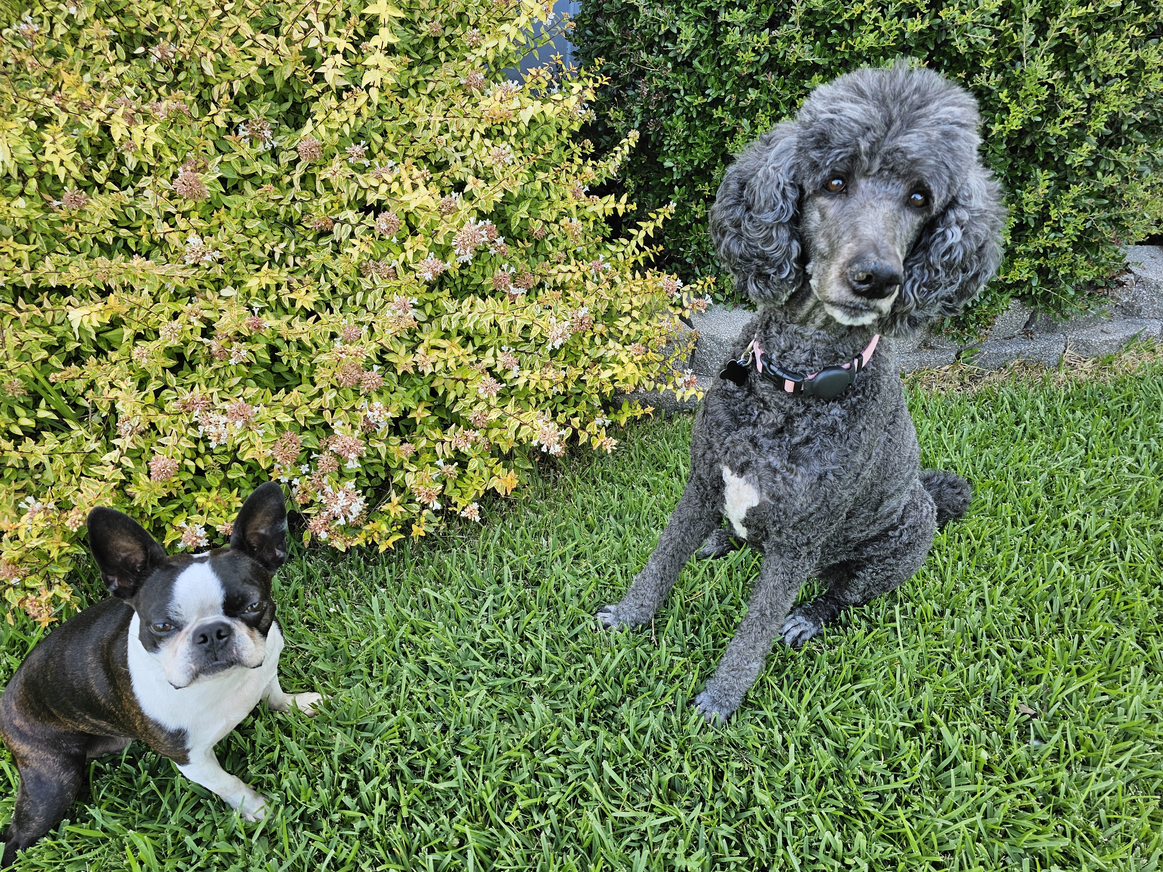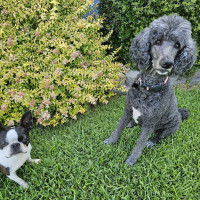I’d be perfectly happy as an only dog, but I also get along just fine with respectful canine companions. There’s a Boston Terrier who visits often, and we coexist peacefully—she gives me space, and I appreciate that. I’m also very polite with people and greet everyone calmly without jumping.