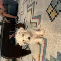 Hi, I’m Sushi! I’m one half of the adorable Soba/Sushi sisters, and at 16 weeks old, I’m already 12 lbs of pure fun. Most people say I look like a Westie/Poodle mix, but I think I’m just the cutest, no matter what!