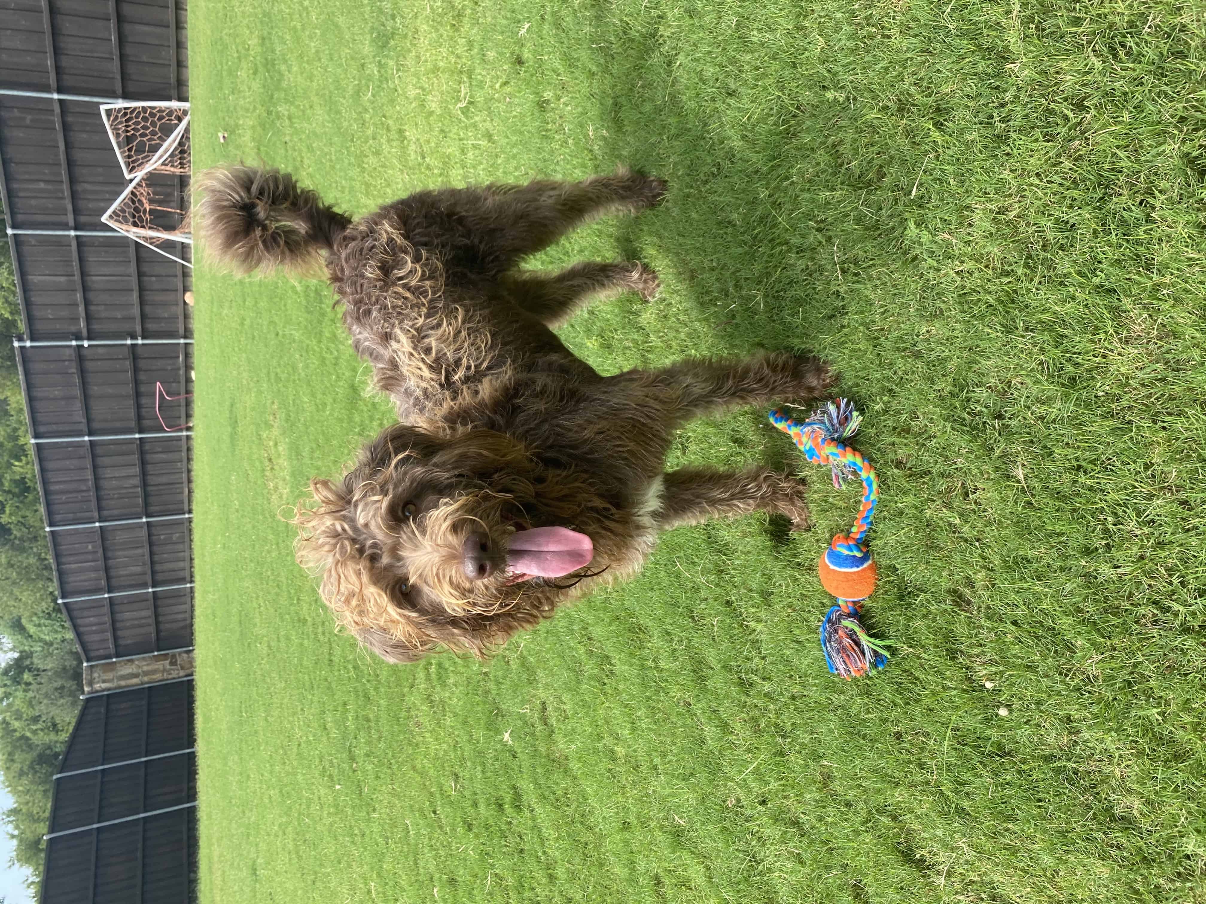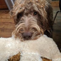 Hi! My name is Suzie! I’m a one-year-old, 60lb Goldendoodle with the most beautiful naturally-highlighted coat that doesn't shed! I'm playful, sweet, and oh so smart! I love playing with my fur sister and romping in the back yard. Did someone say fetch? Give me a ball and I'm one happy girl! Did someone else say food? I'm a big eater and will be your best friend if you give me all the treatos! I'm friendly with all doggos and humans of all ages. If you'll pet me and play with me, then I'll love you forever!
