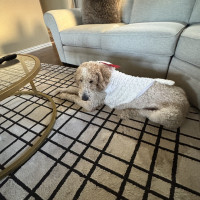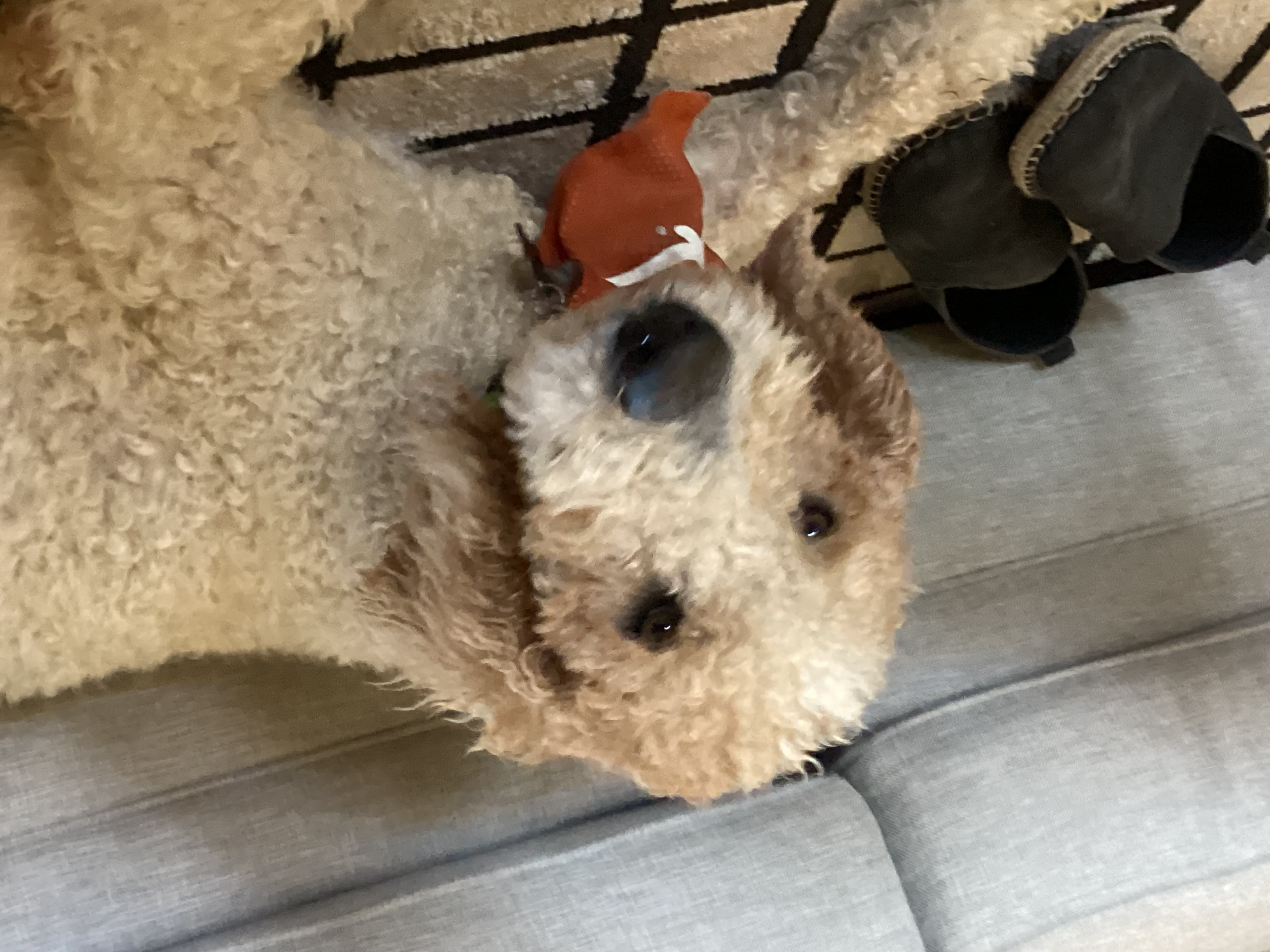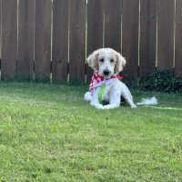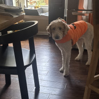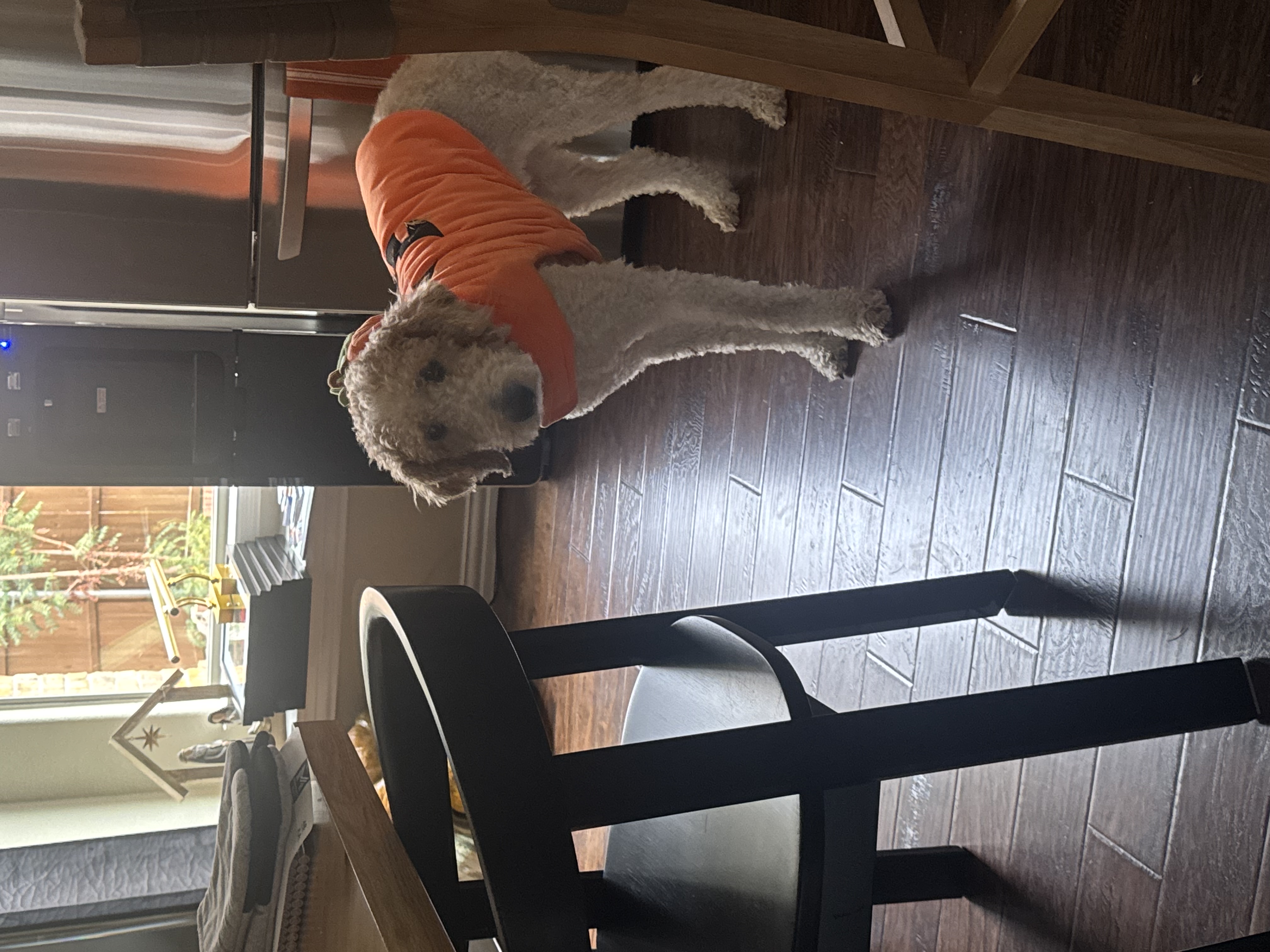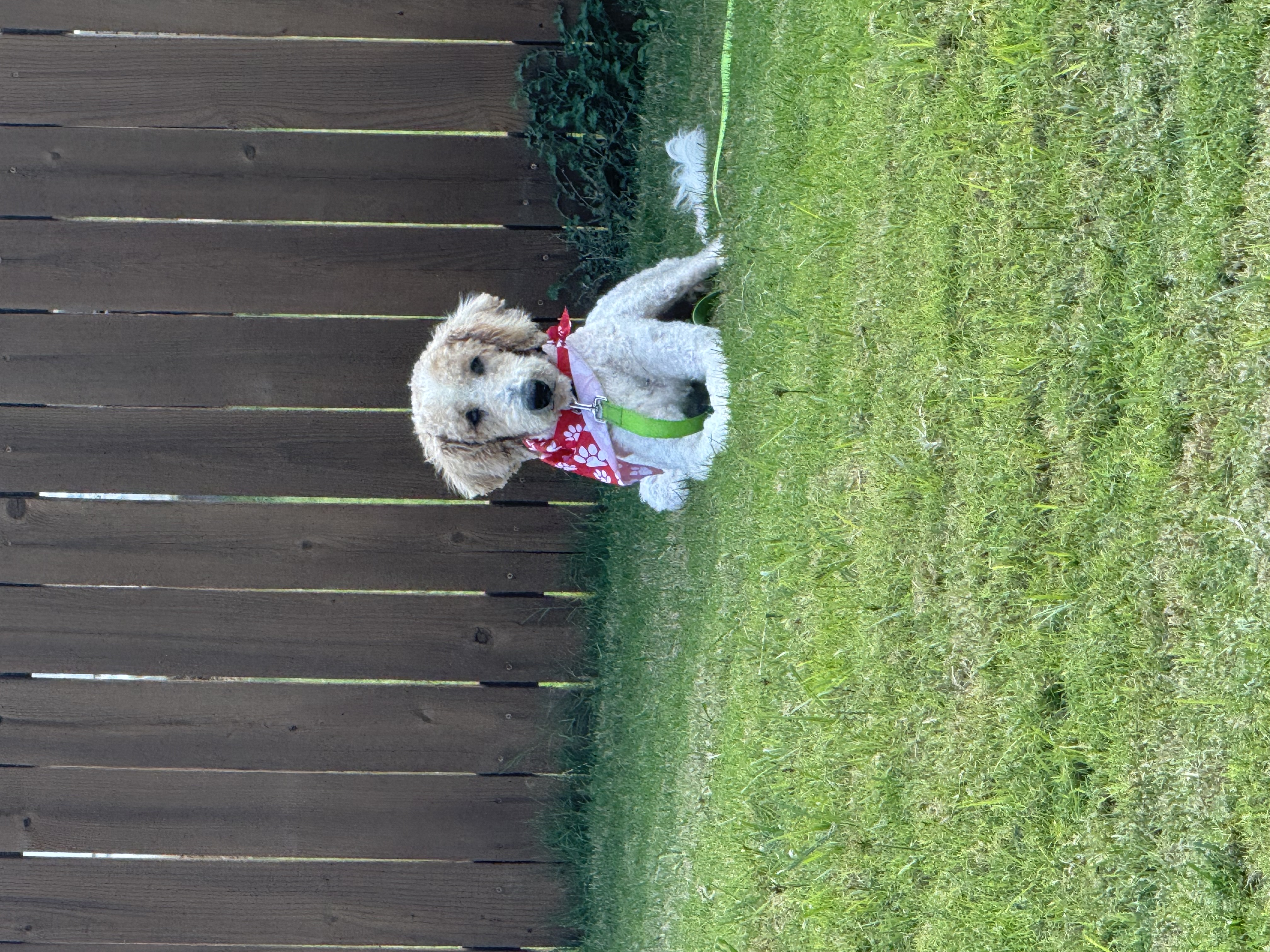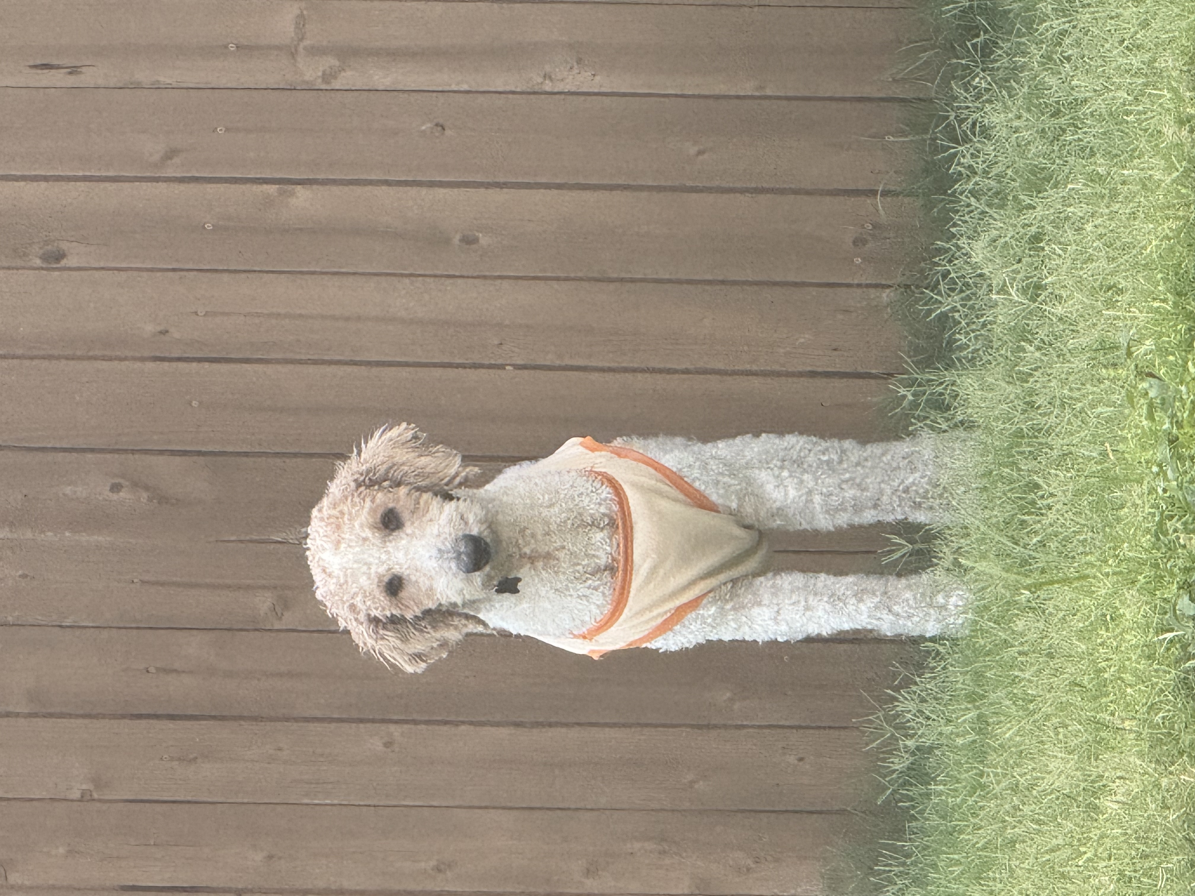I’m a 1½-year-old, 50-pound poodle mix with a happy heart and a constantly wagging tail. I’m a calm, gentle girl who loves being near my people and soaking up all the love and attention I can get. My foster family says I’m pure joy to have around—always ready for a game of fetch, a walk, or a cuddle on the couch.