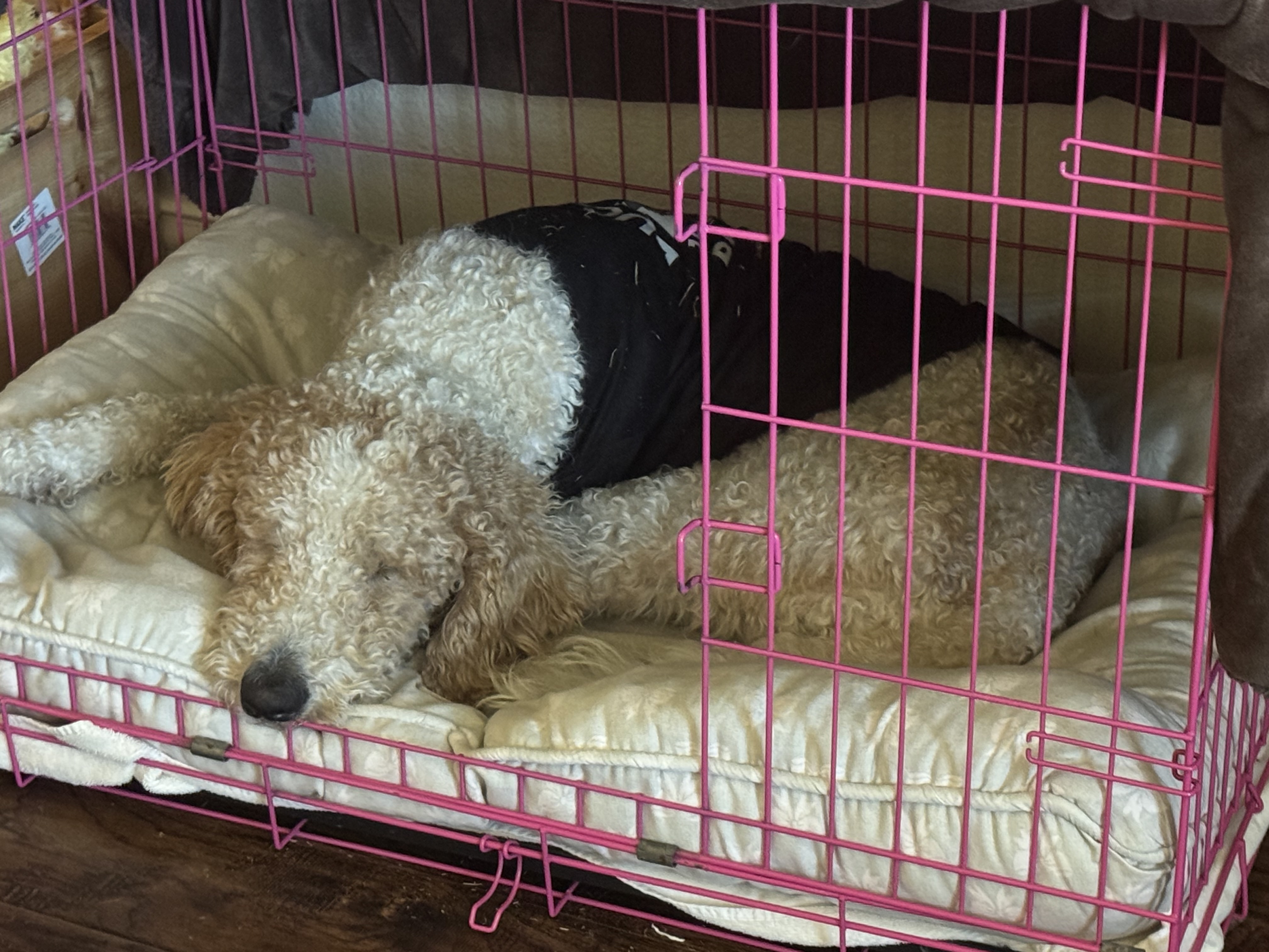 My days start around 8 a.m. with a potty break, some playtime, and breakfast, followed by calm company while my foster family works from home. I’m polite and quiet during the day but love a few play breaks outside. By about 10:30 p.m., I tuck myself into my crate for a good night’s sleep.