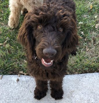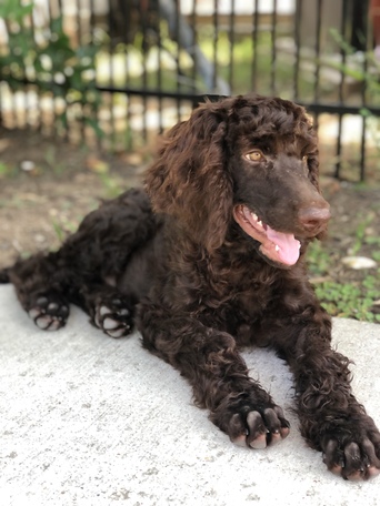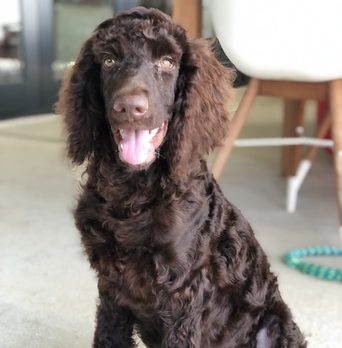 Hi! I’m Teddy! I am a 5 1/2 month old, 50 lb male standard poodle. I am the sweetest boy with the most soulful eyes and a gorgeous chocolate-colored, curly coat. I don’t shed much, and love a weekly bath and daily grooming.