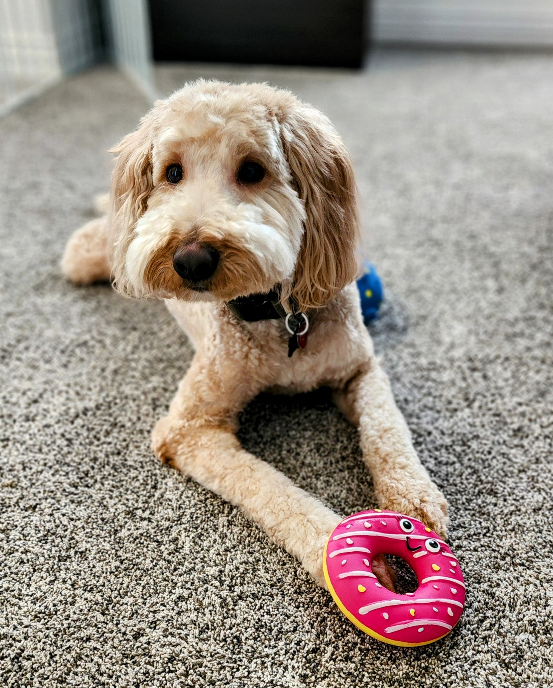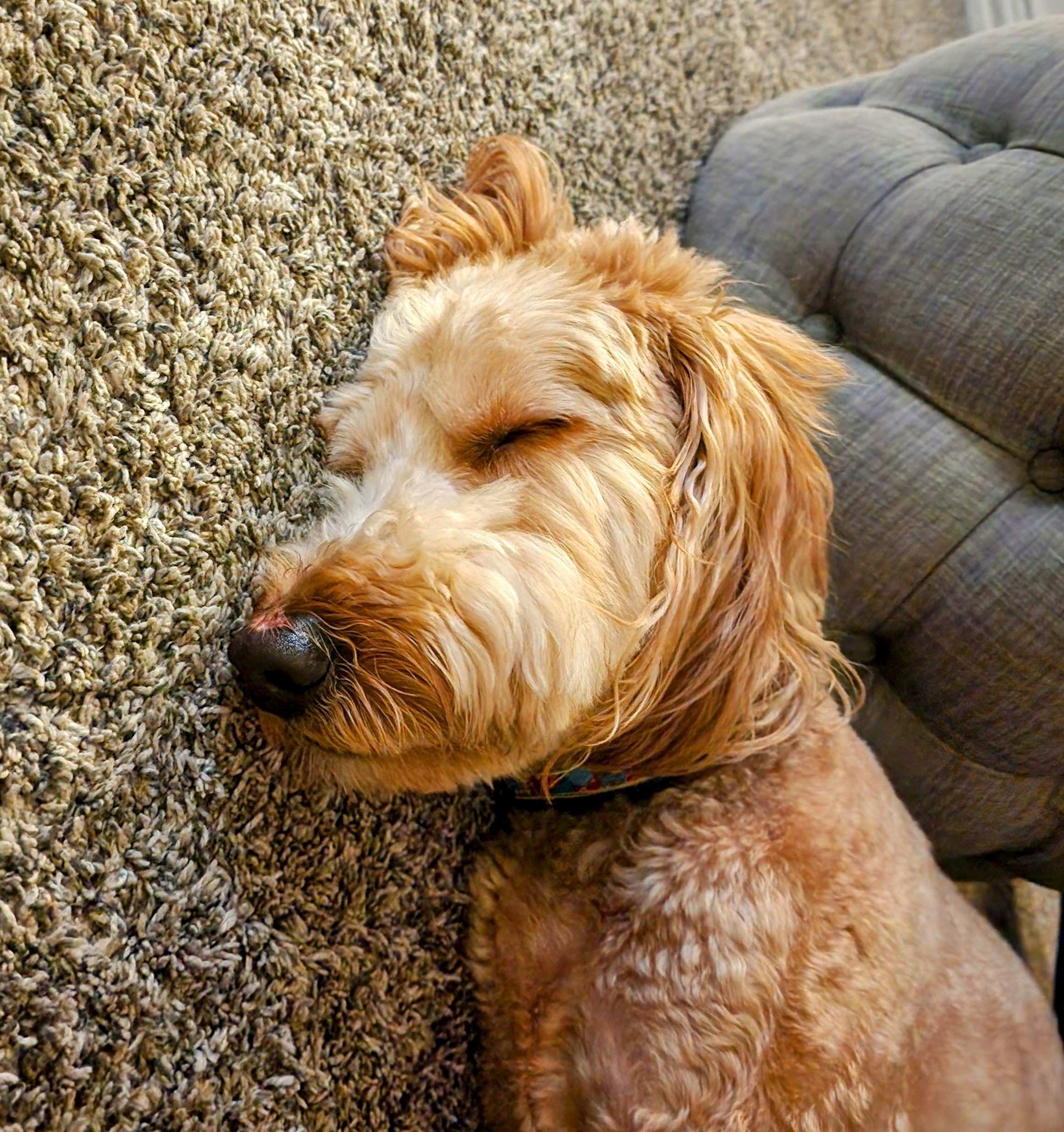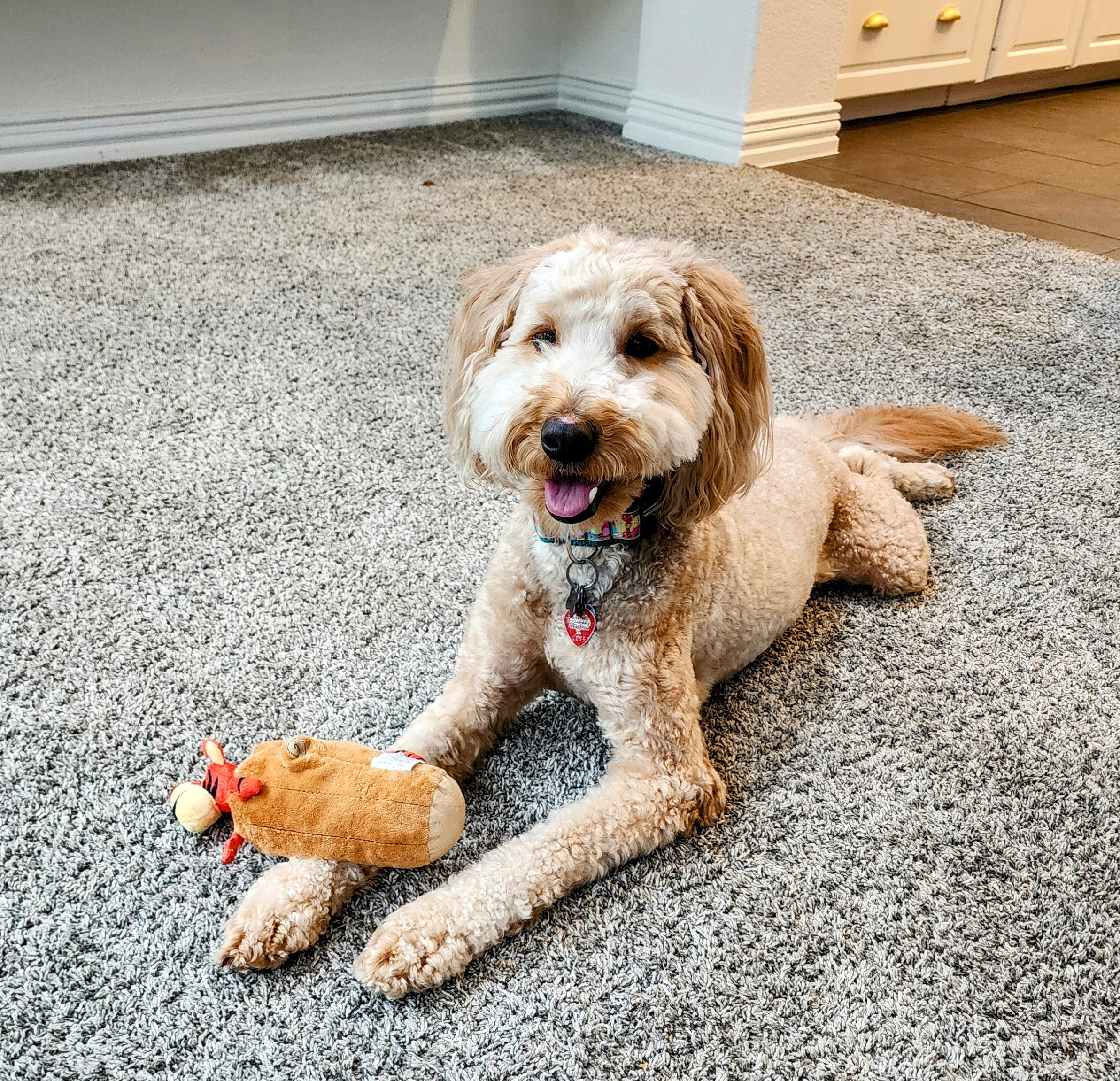 Hi, I’m Teddy! I’m a 3-year-old, 33-pound miniature Goldendoodle with a heart full of love.