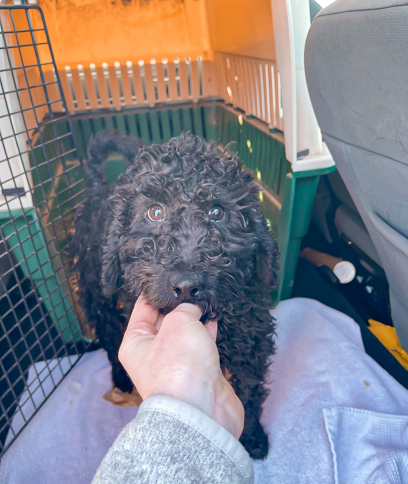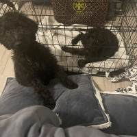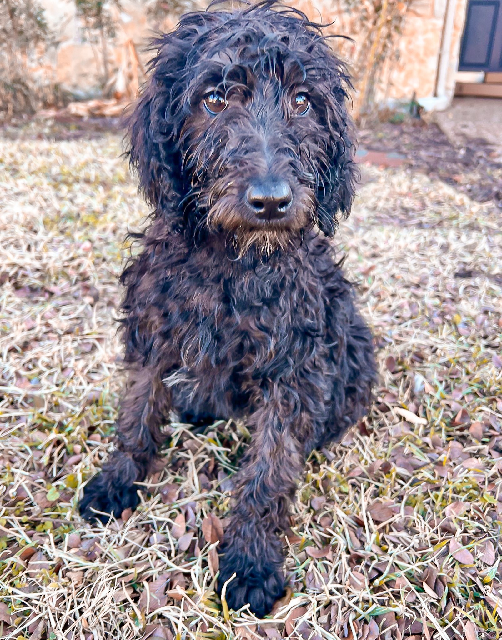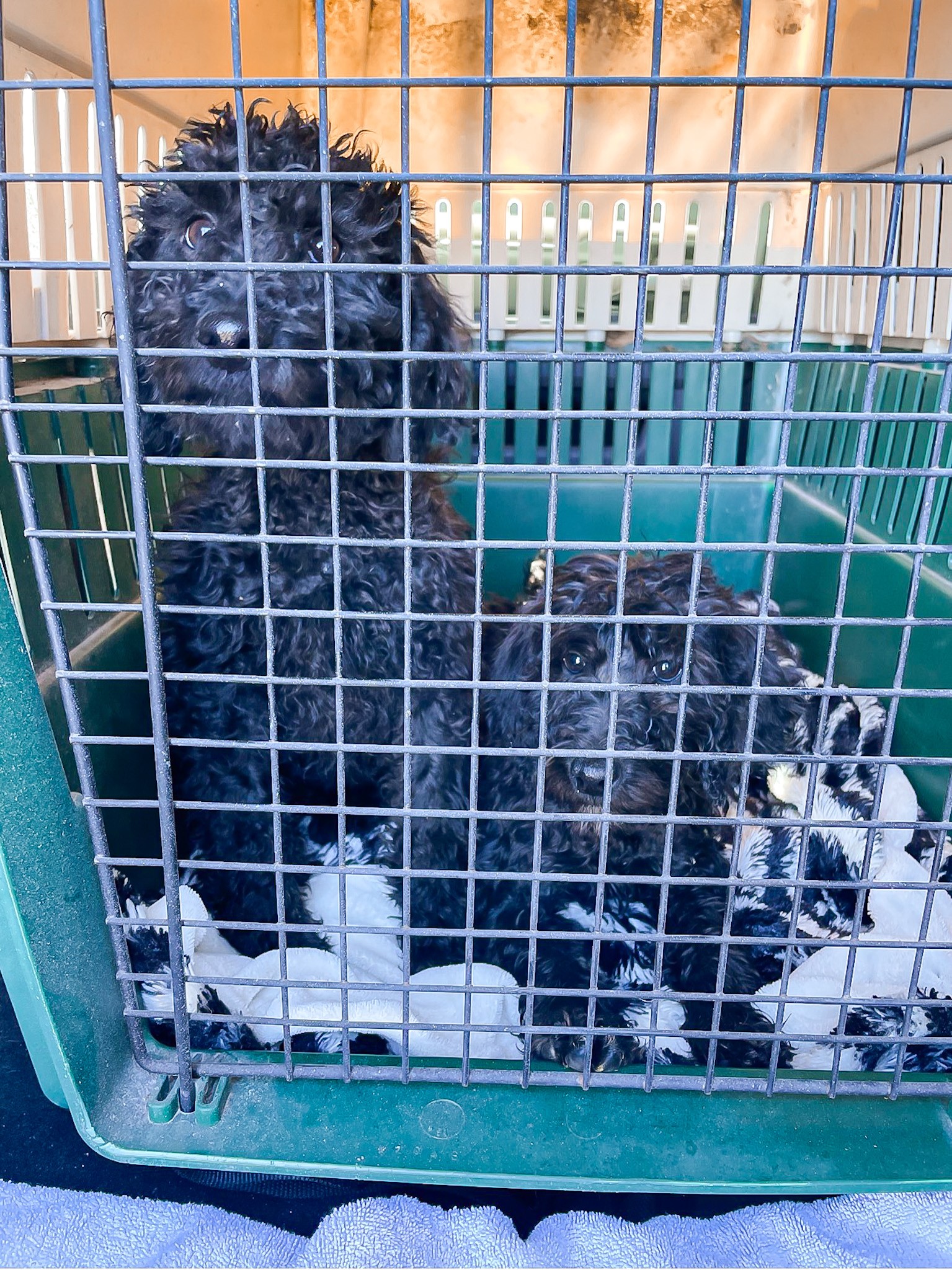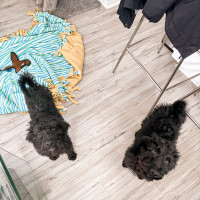 Hi, we are The Reagans, I’m Ronald (14lb, M) and I’m Nancy (10lb, F) and we are 5-month-old Adoradoodles. We are super playful and still growing and do require consistent grooming, but we don’t shed.