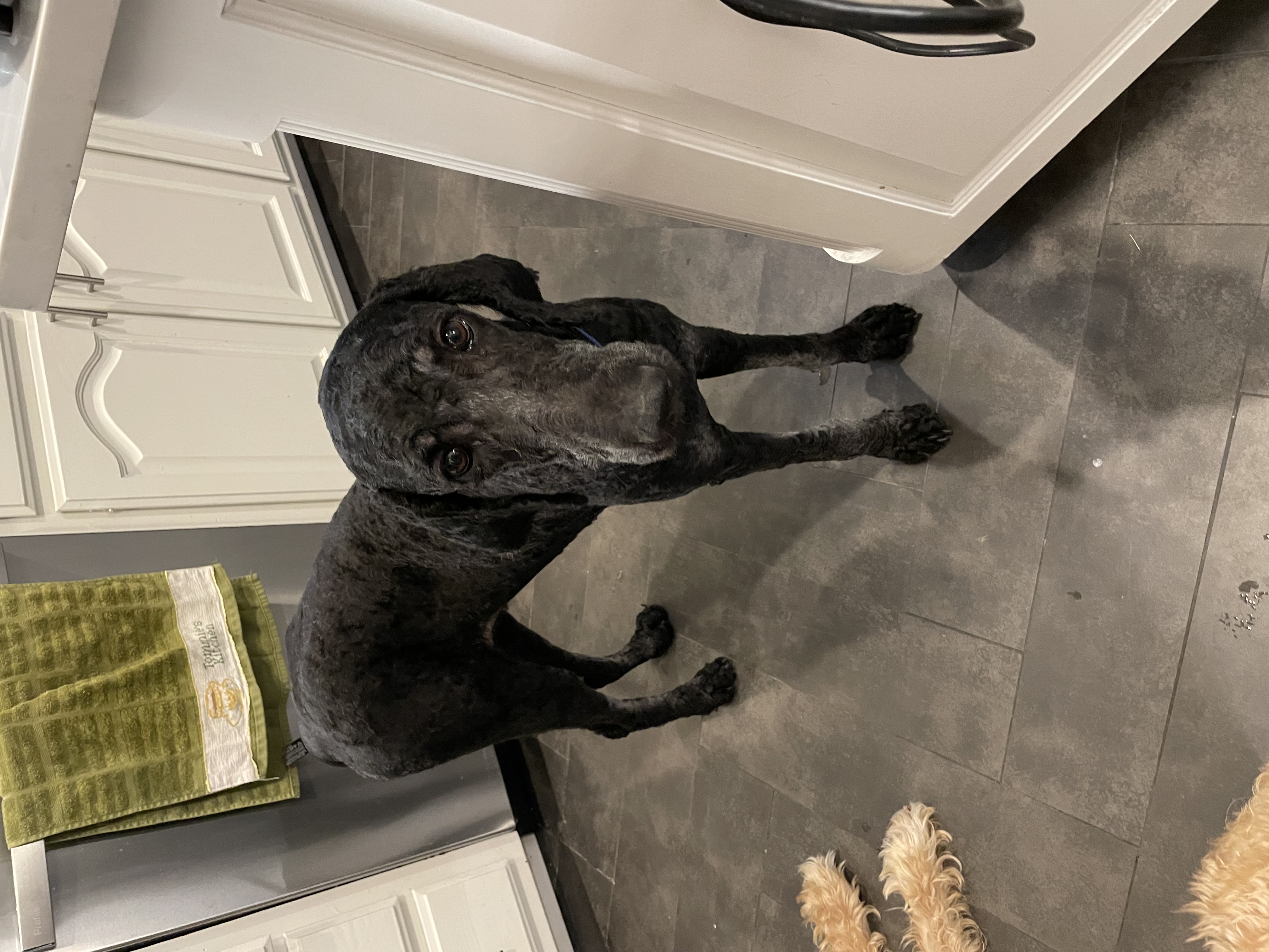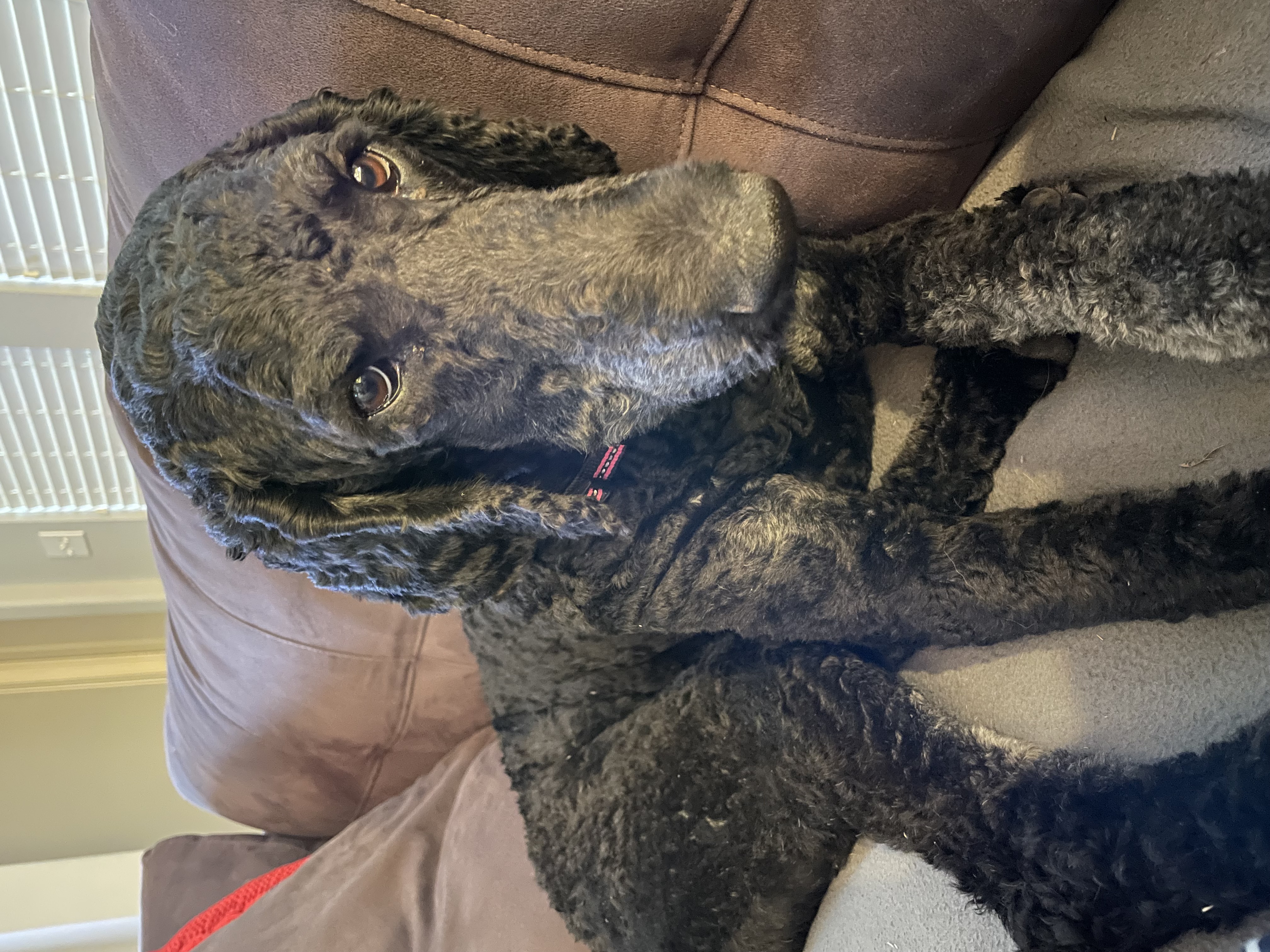 Hi! My name is Thelma. I am a 52 lb Female Poodle. I am the sweetest girl you will ever meet. I don't shed at all but I will need regular grooming since I am a poodle and have luxurious perfect curls when my hair is grown out.