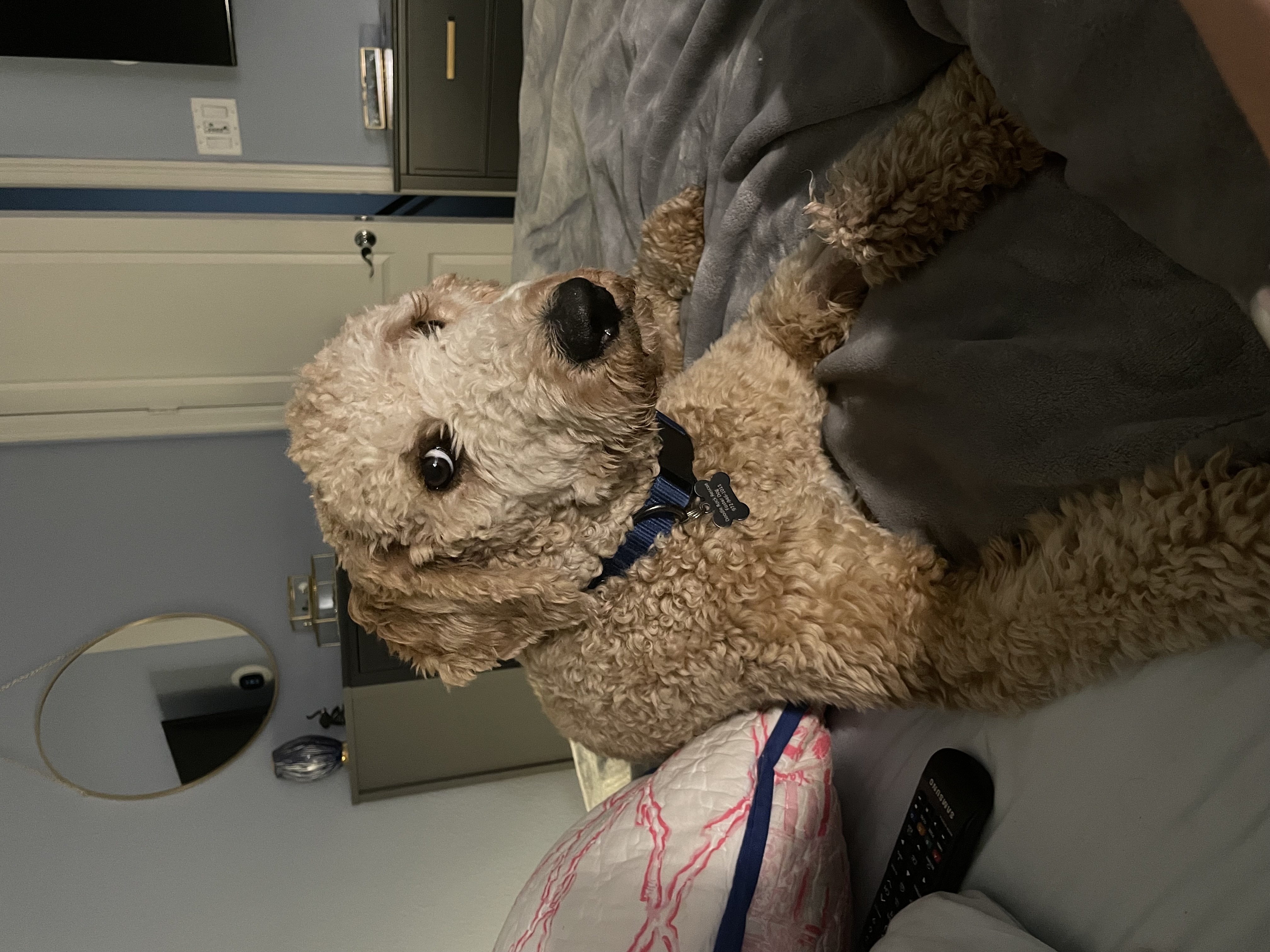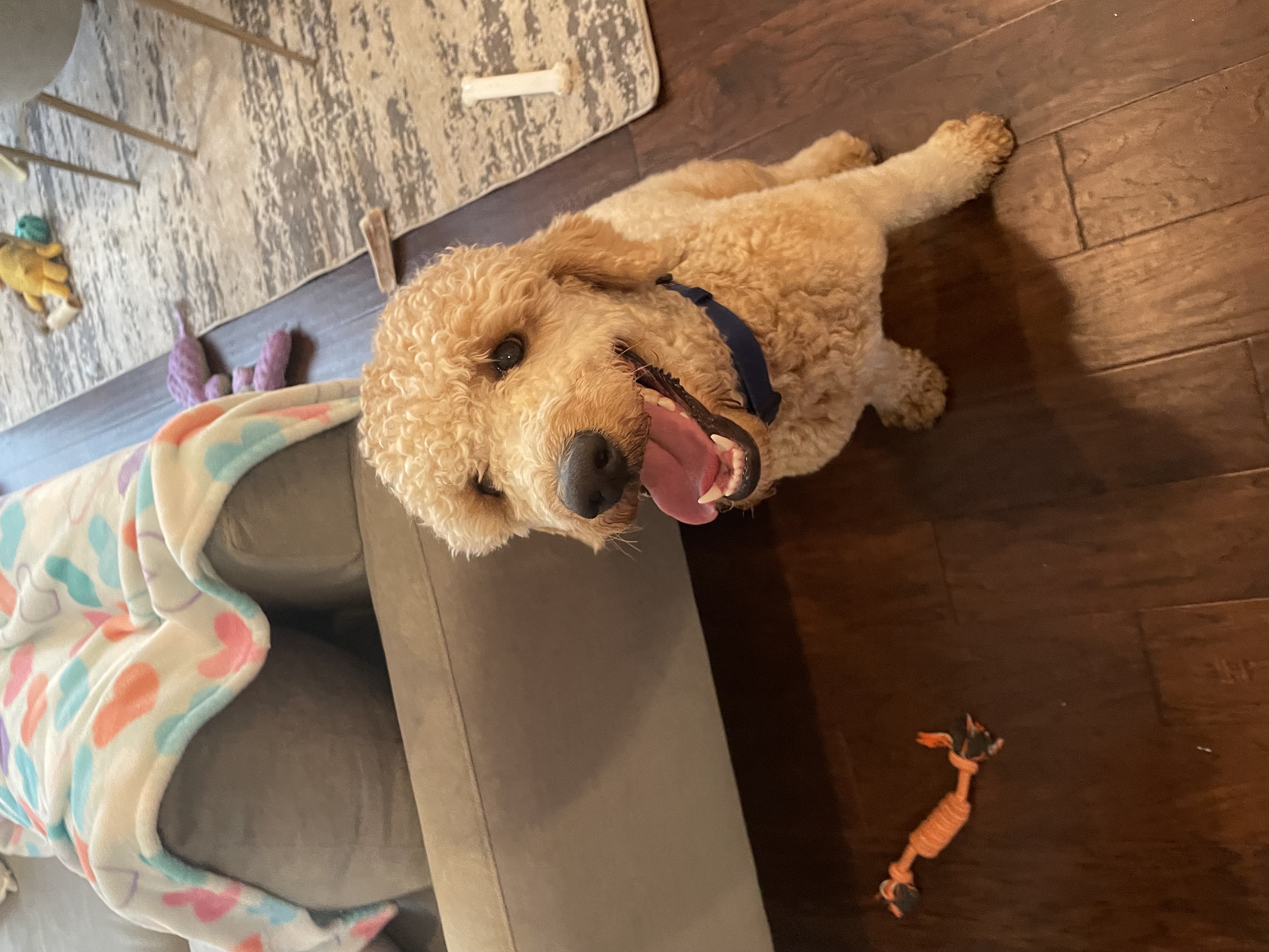 My name is Thor and I just turned one year old. I am a Male Labradoodle that weighs 45lbs. I have a tan, curly coat and have been told it is so soft.