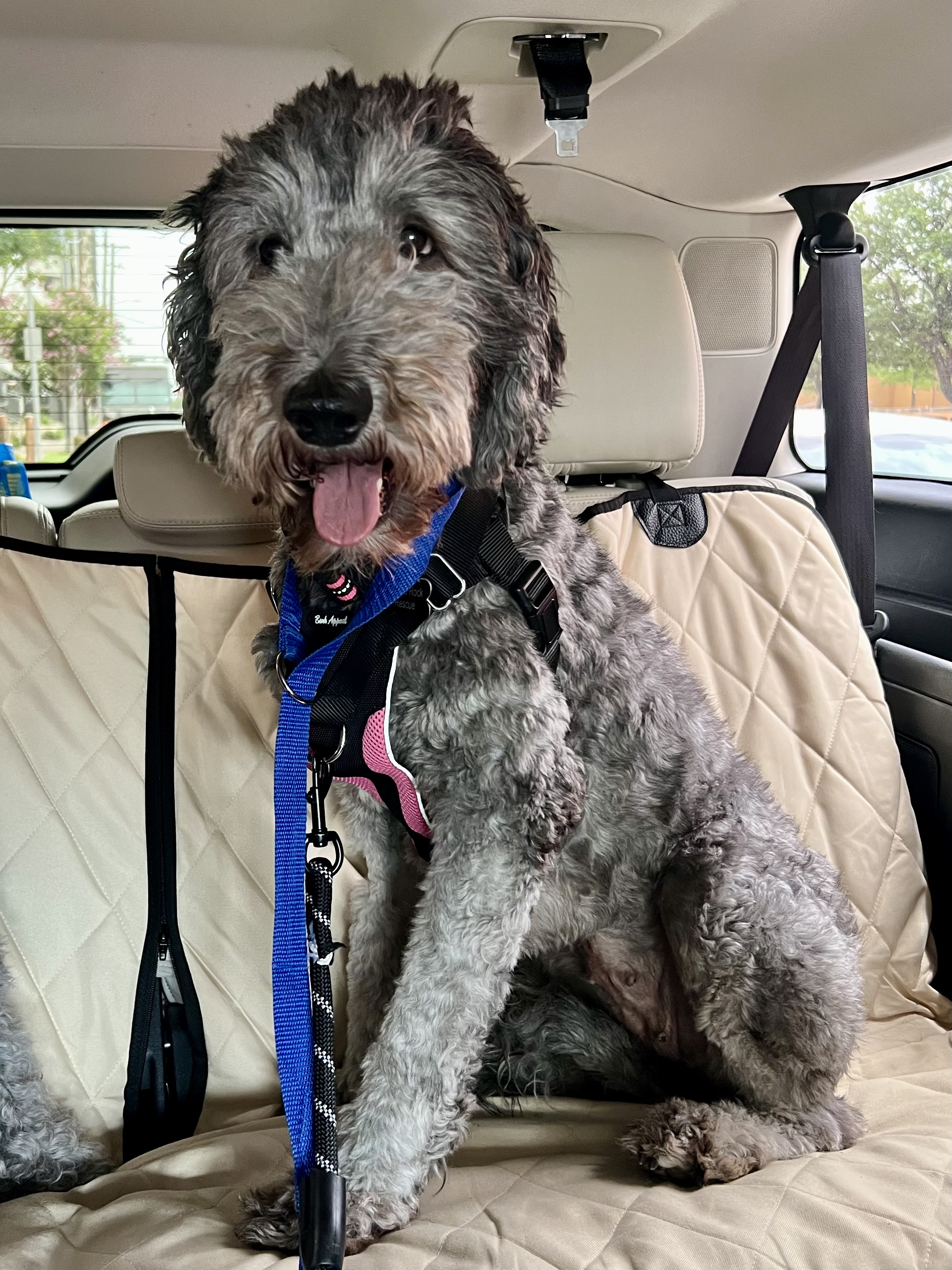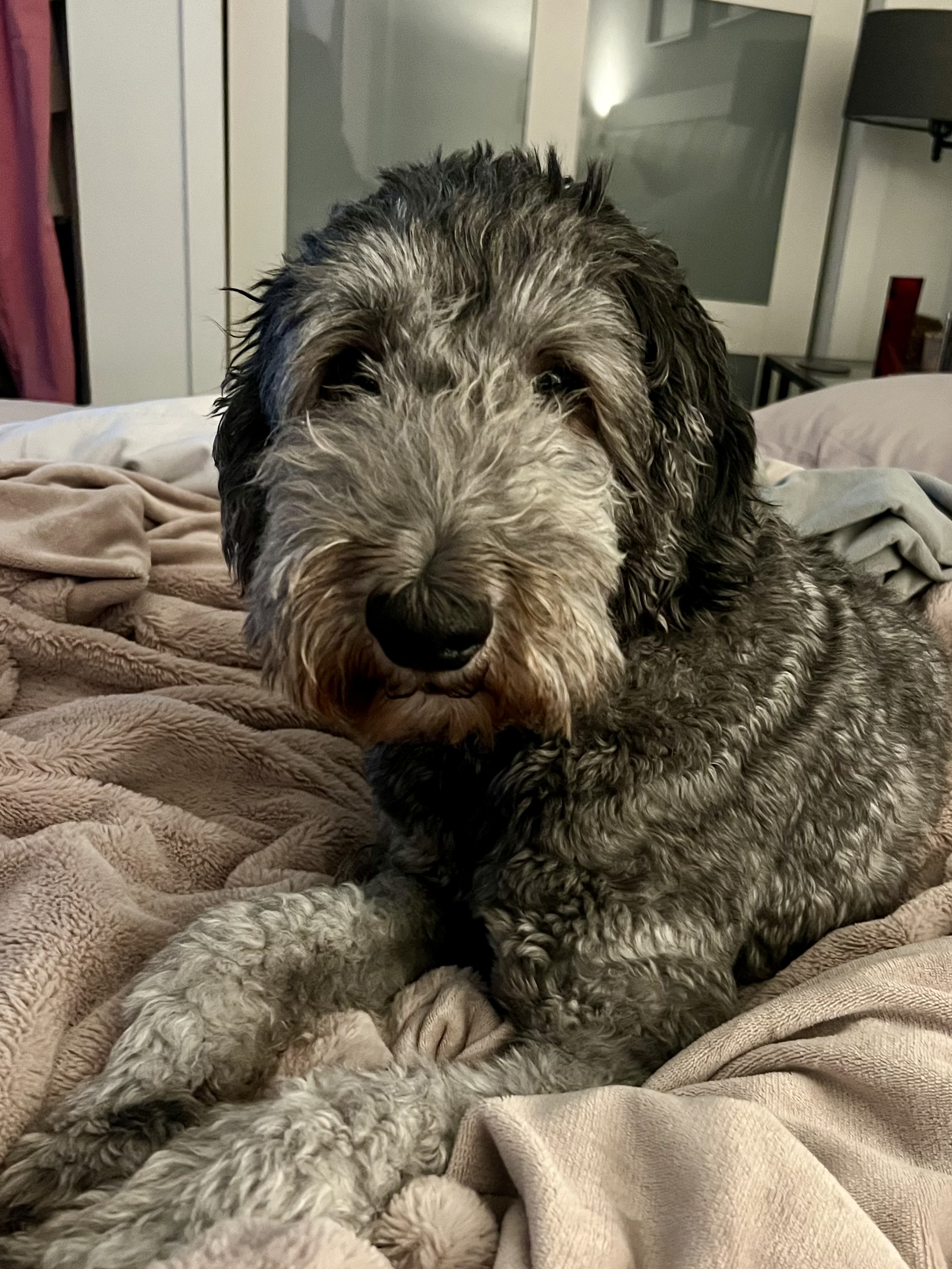 Hi, I'm Toulouse, but my foster mom calls me Toodles. I’m a 2-year-old female, Poodle mix (my foster thinks im a poodle/old English Sheepdog mix), weighing about 50 pounds. After a rough start, I’m slowly learning that life can be good and people can be kind.