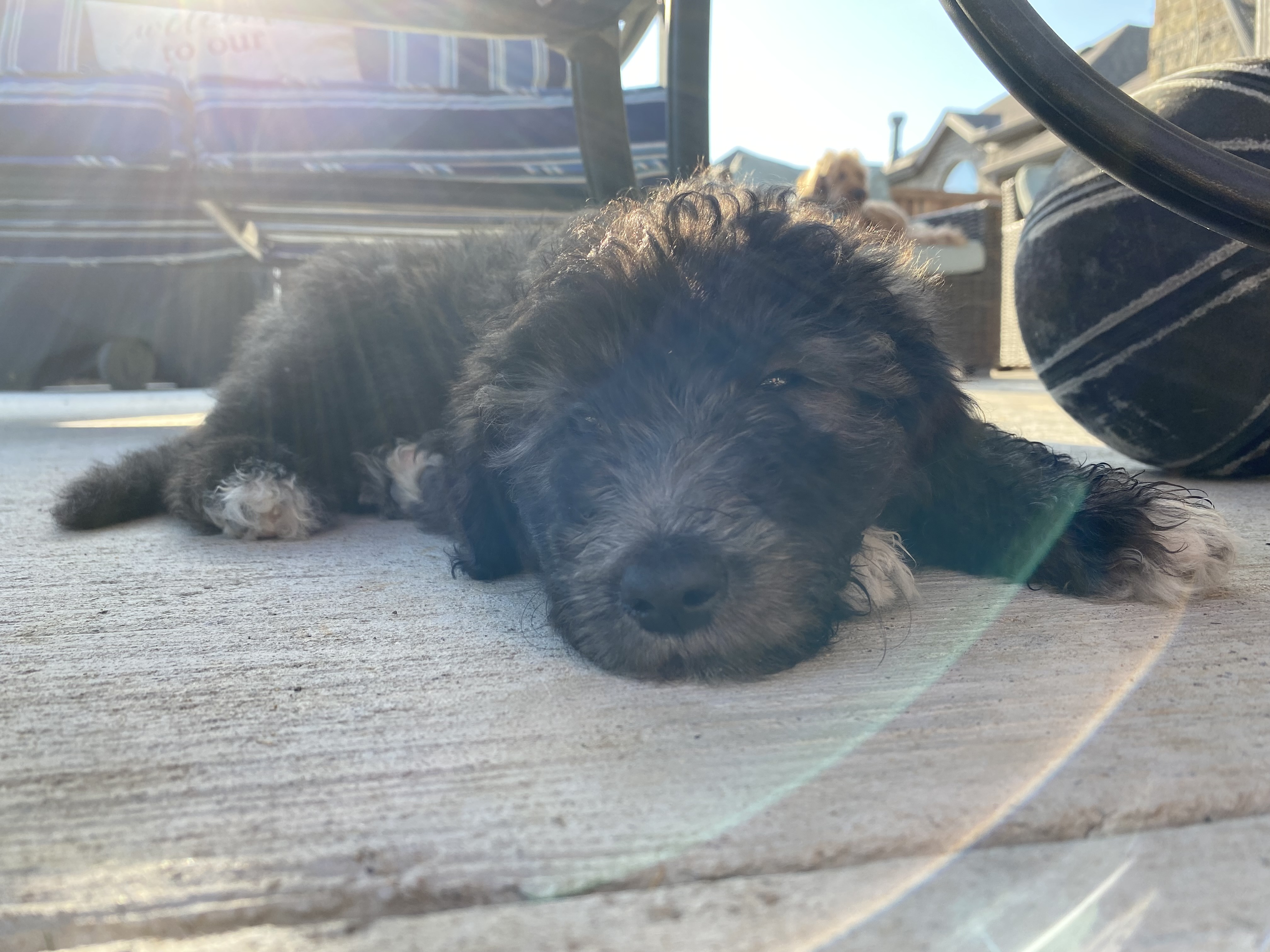 I’m growing everyday and my personality is shinning more and more.. at least that’s what I’m told ☺️. I am a cheerful pup and eager to make you smile. I really love to play. Right now I’m living with three other dogs, so if one doesn’t want to play with me I move on to the next. I can normally find one that will roll around and play tag with me. I also LOVE splashing around in water. Occasionally I’ll splash in my water bowl, but most of the time I’ll go in the little doggy pool and have the best time.