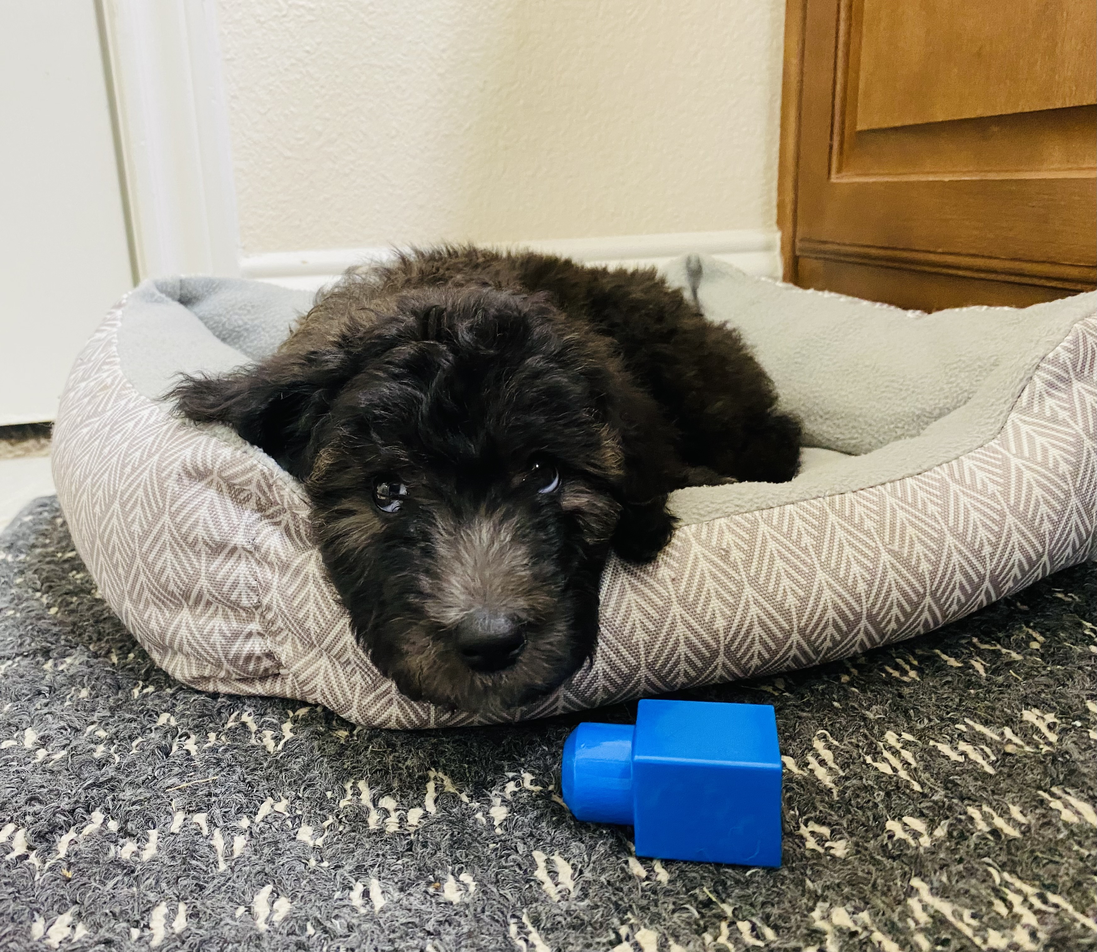 Hi guys! Look no further because I’m one of the cutest sheepadoodles you’ll ever see! My name is Twister, and I’m a 12 week old spunky girl weighing 11 pounds.
