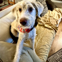 Hi, I’m Vela. I’m a 2-3 year old doodle mix girl, about 40 pounds, and I’m as sweet as they come. I love to cuddle, especially with my foster mom, and once I trust you, I’ll happily soak up all the pets you’re willing to give. I can be shy with new people and men at first, but trust is something I build with time, patience, and kindness. I’m getting braver every day and I really enjoy being loved on.