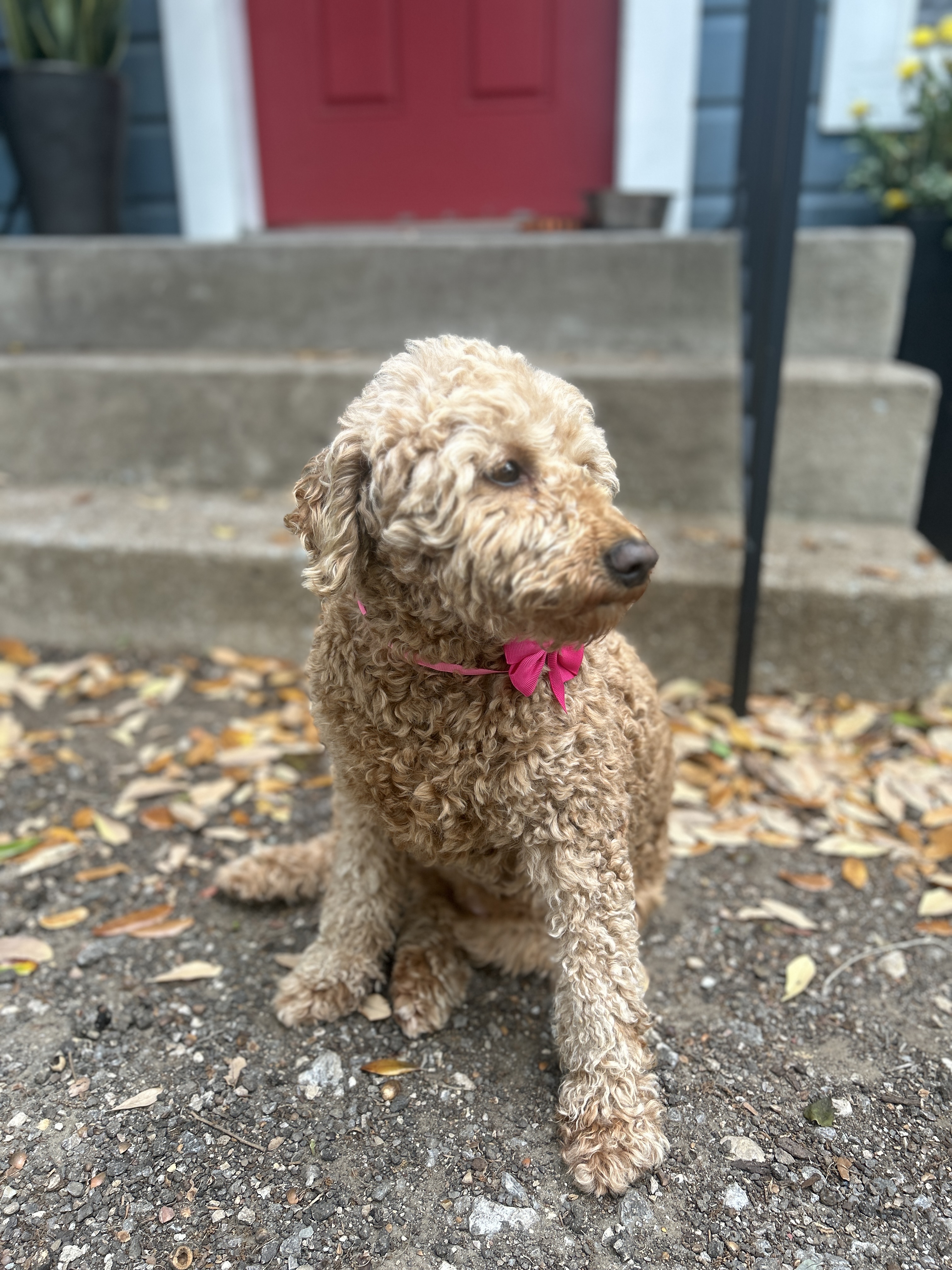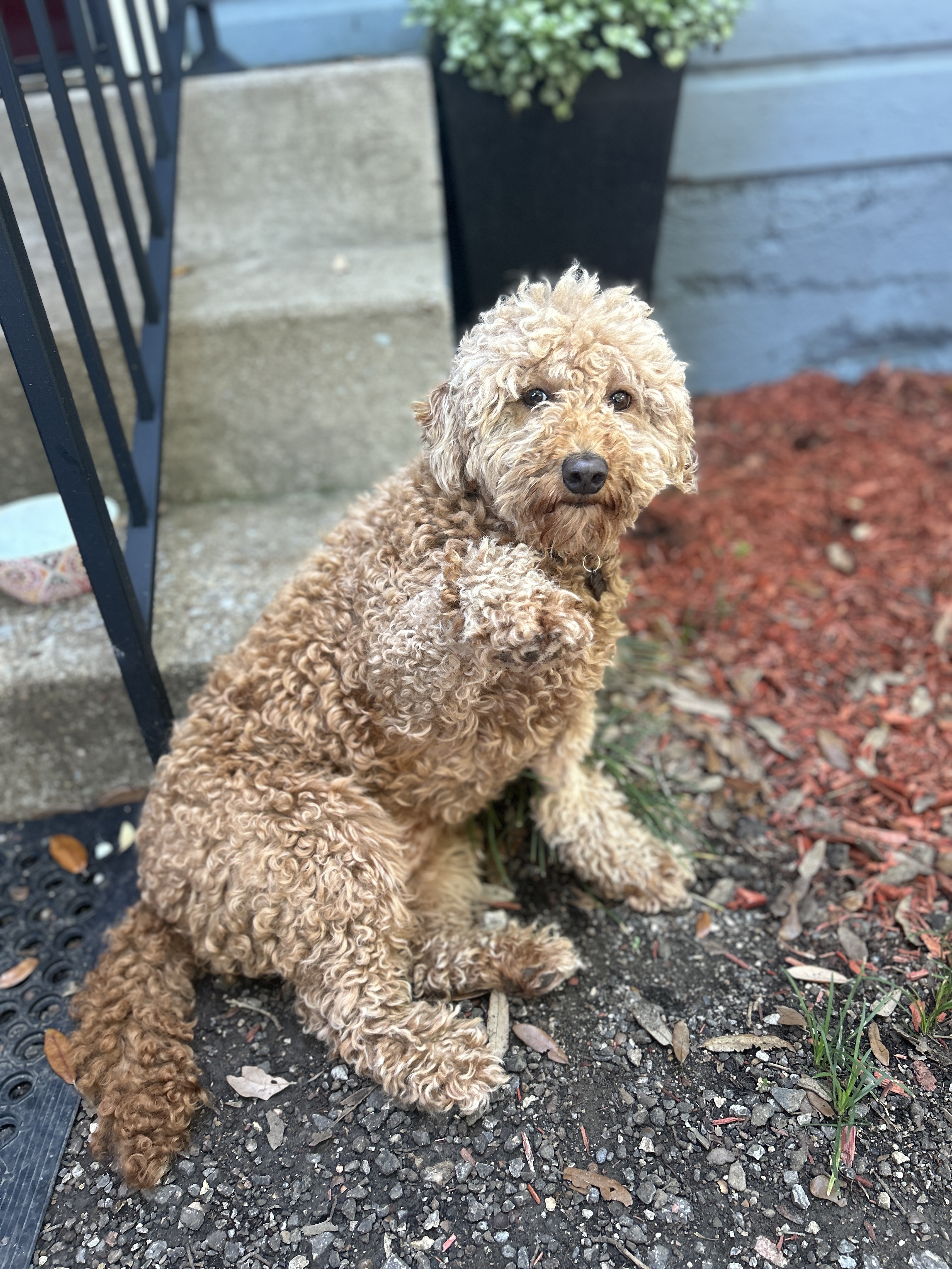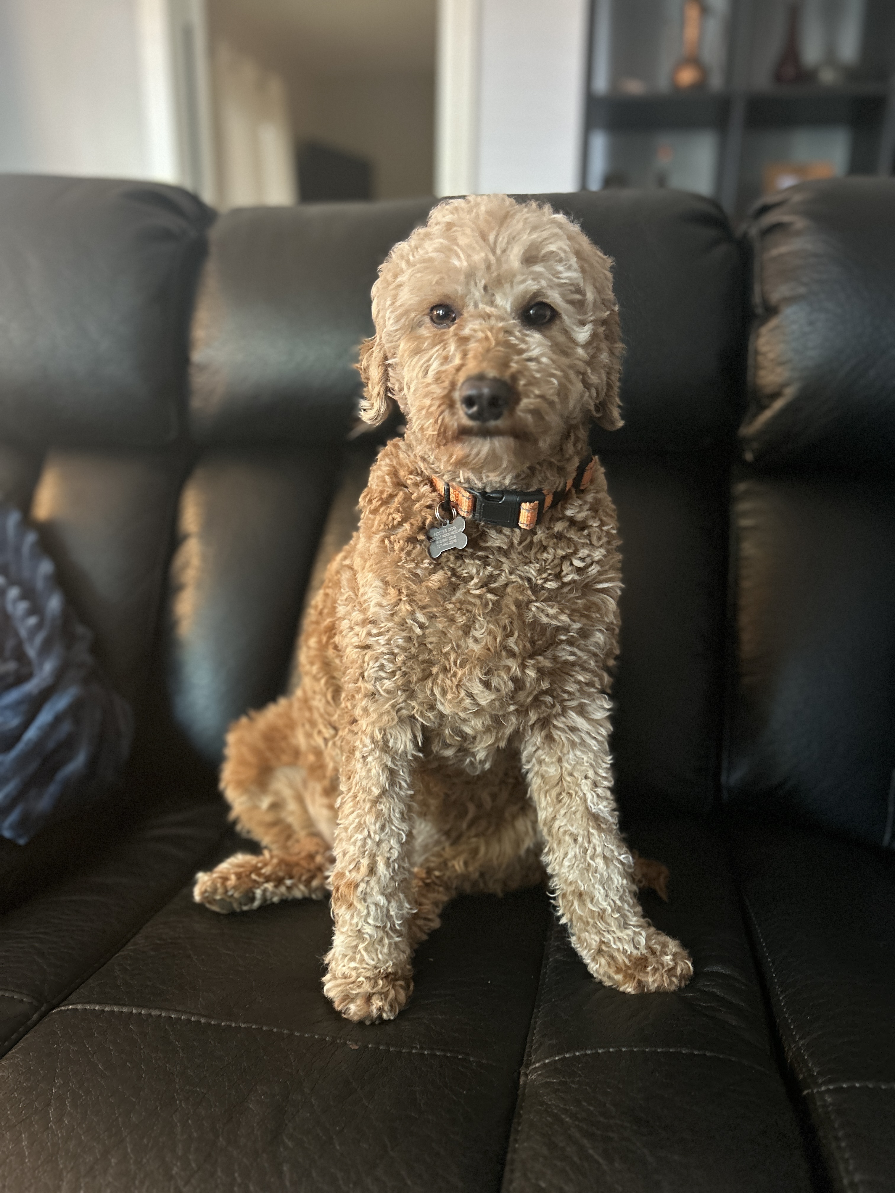Hi, I am Versace, a 3-years-old, Female Goldendoodle, 30 lbs.