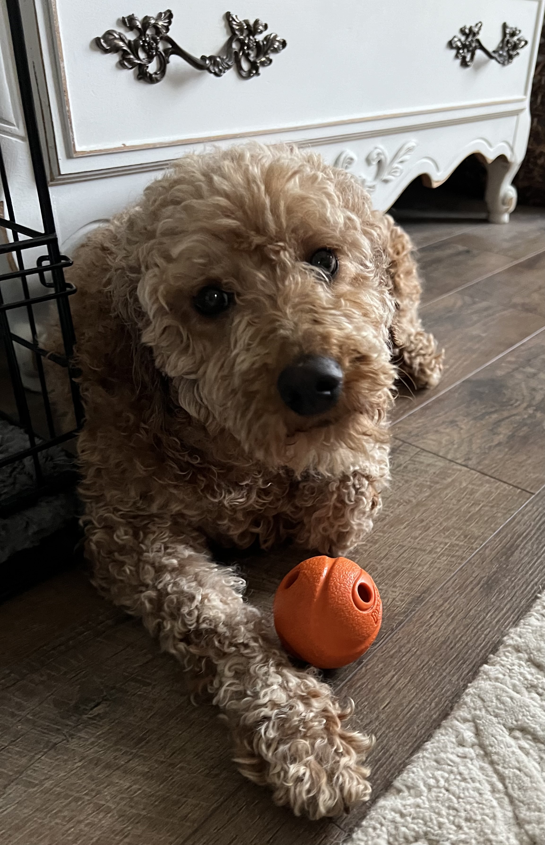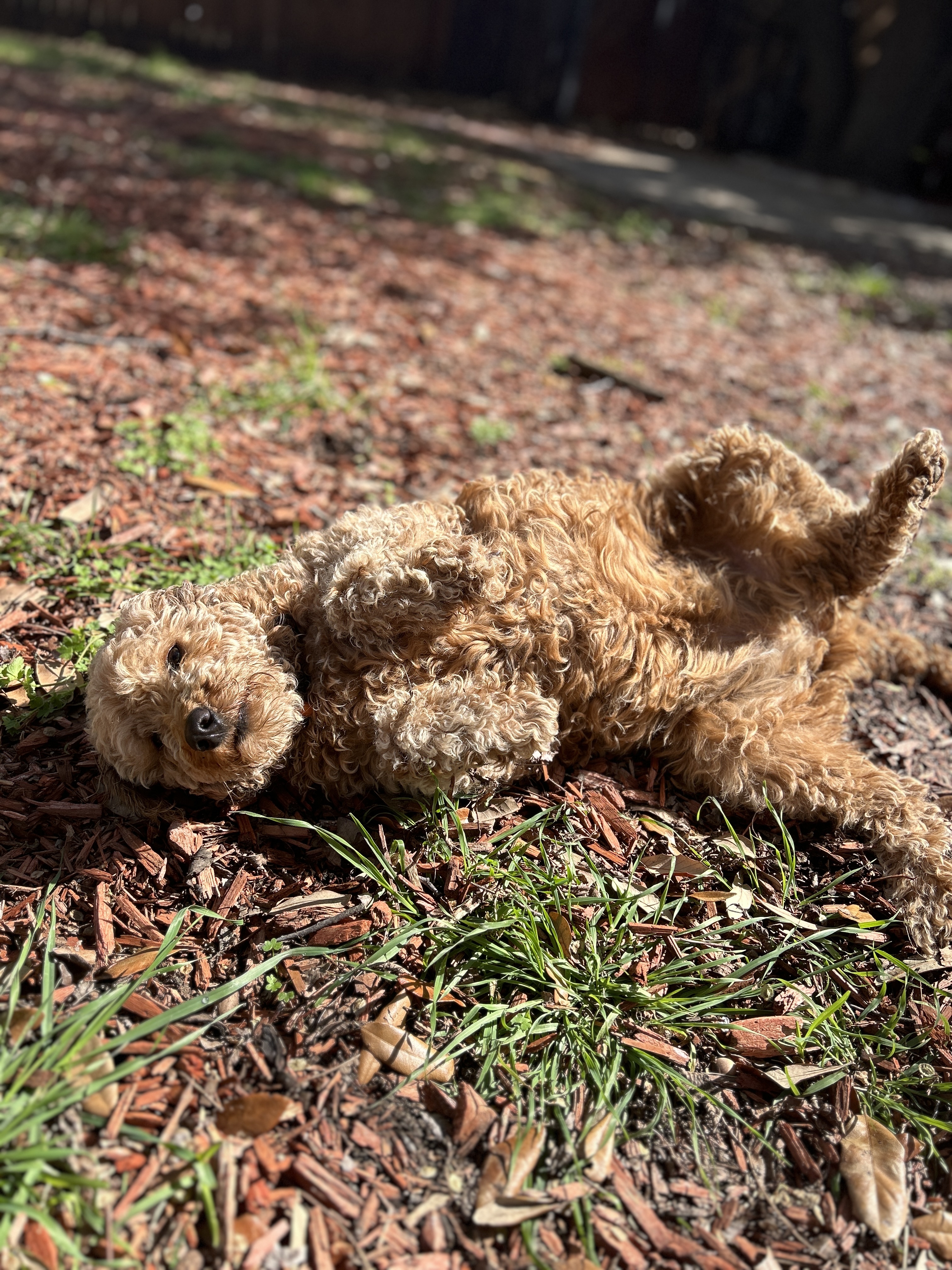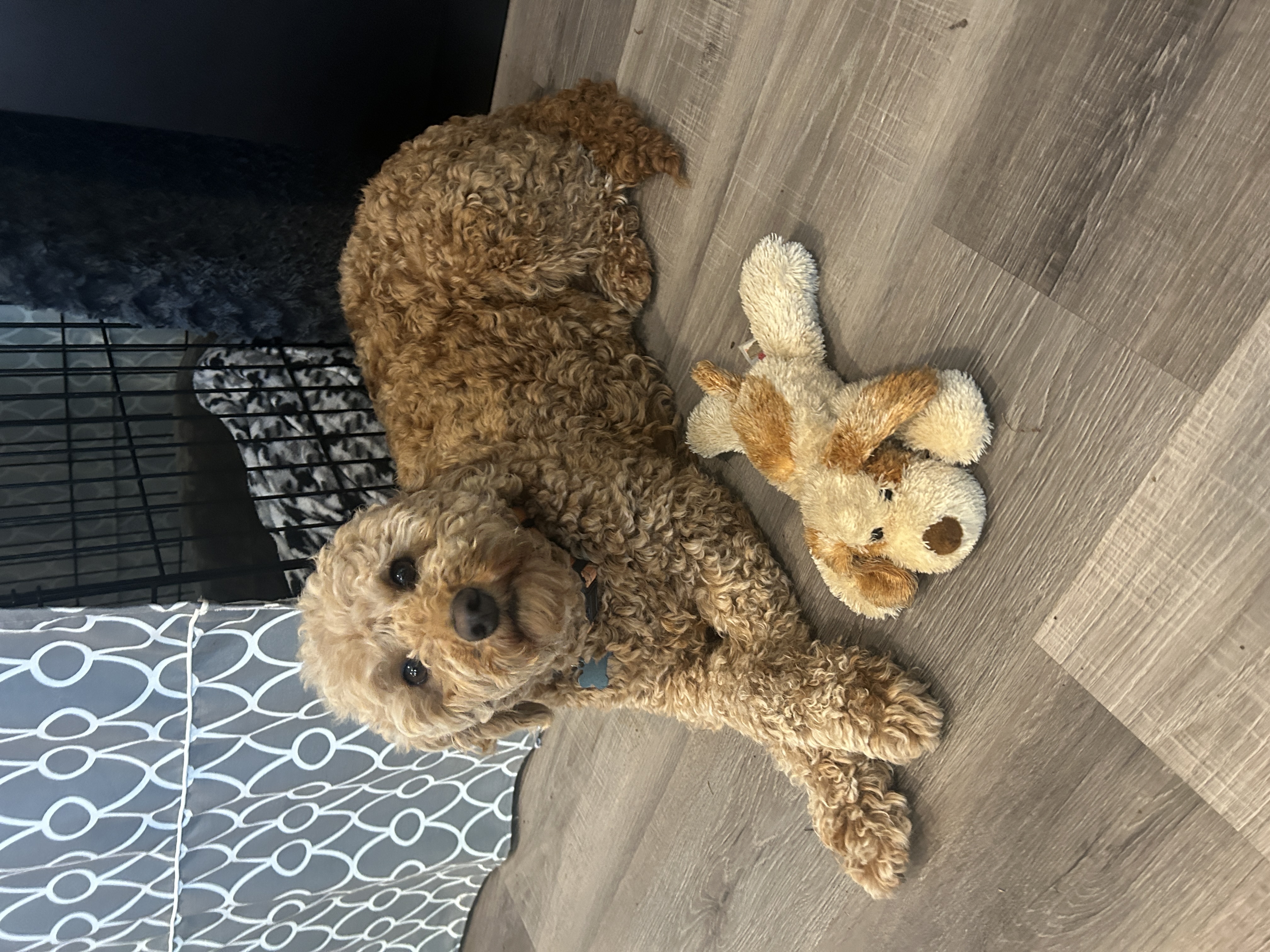 Hi, I am Versace, a 3-years-old, Female Goldendoodle, 30 lbs.