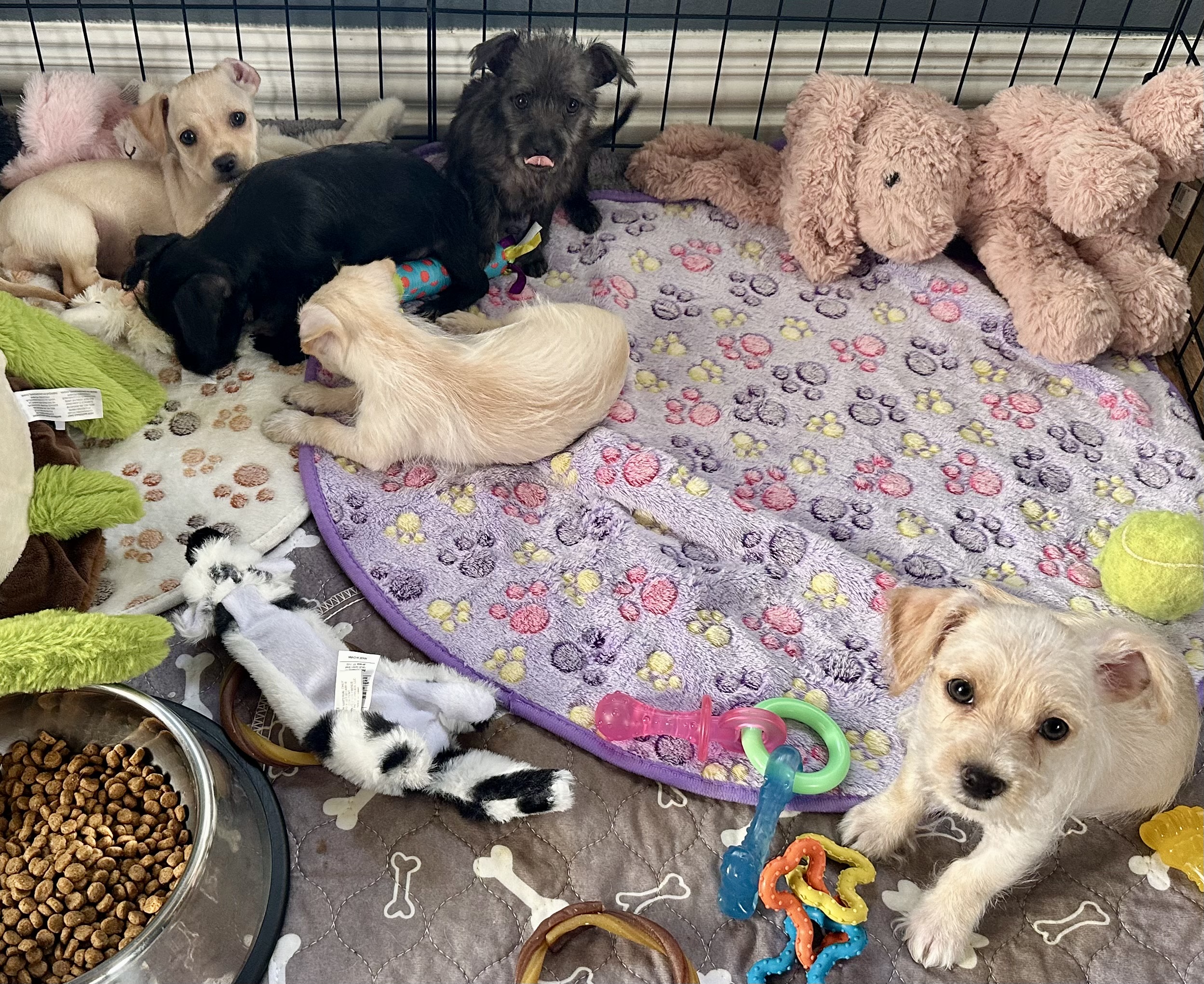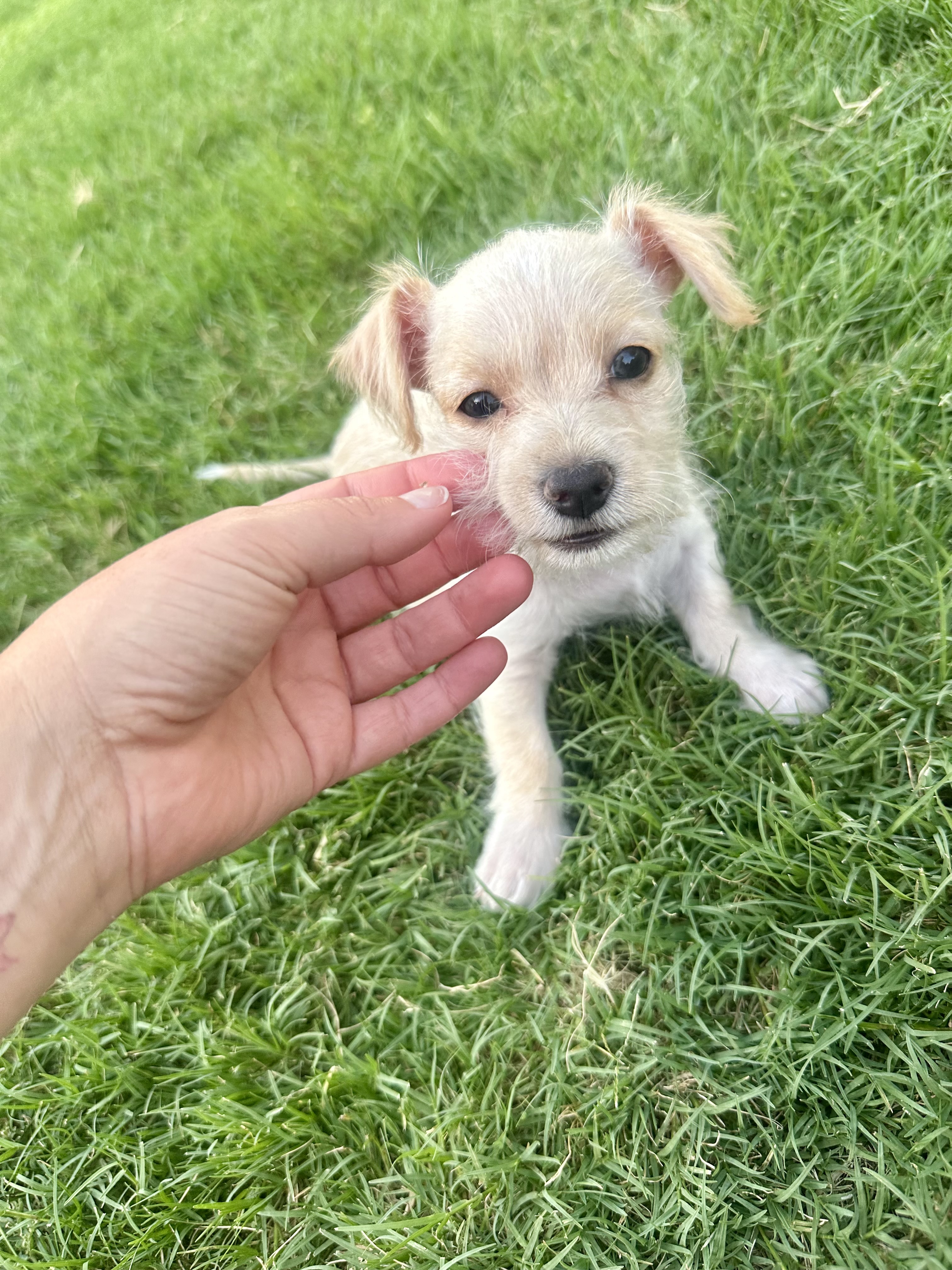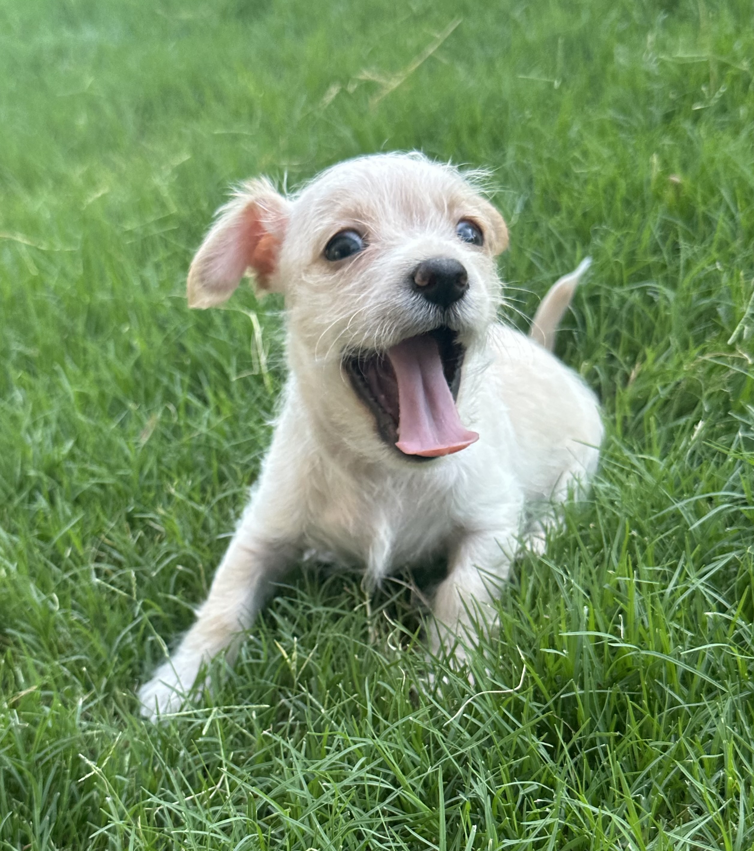 Hi! My name is Weenie, and I’m an 8-week-old mystery mix with a whole lot of cuteness—just ask my foster mom. No one’s quite sure what breed I am, but one thing’s for sure: I’ve got charm to spare and a heart as big as my paws. Right now, I weigh 3 pounds, making me the biggest of my litter—and maybe the best cuddler, too.