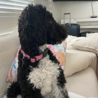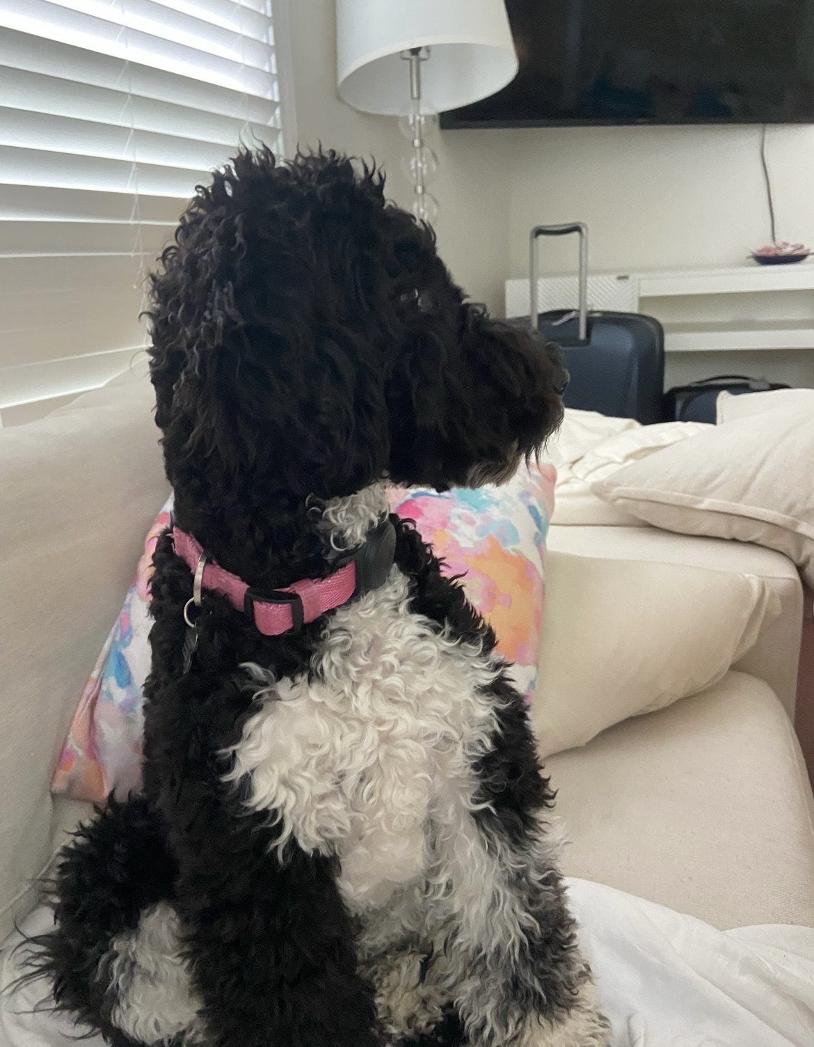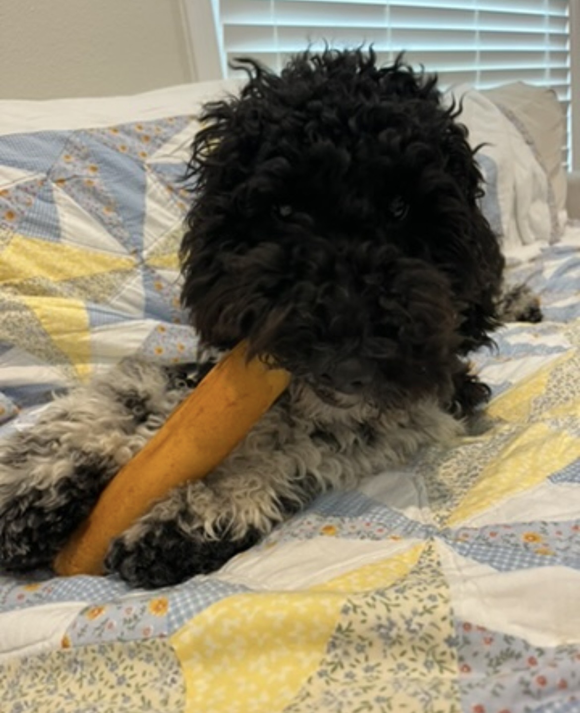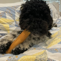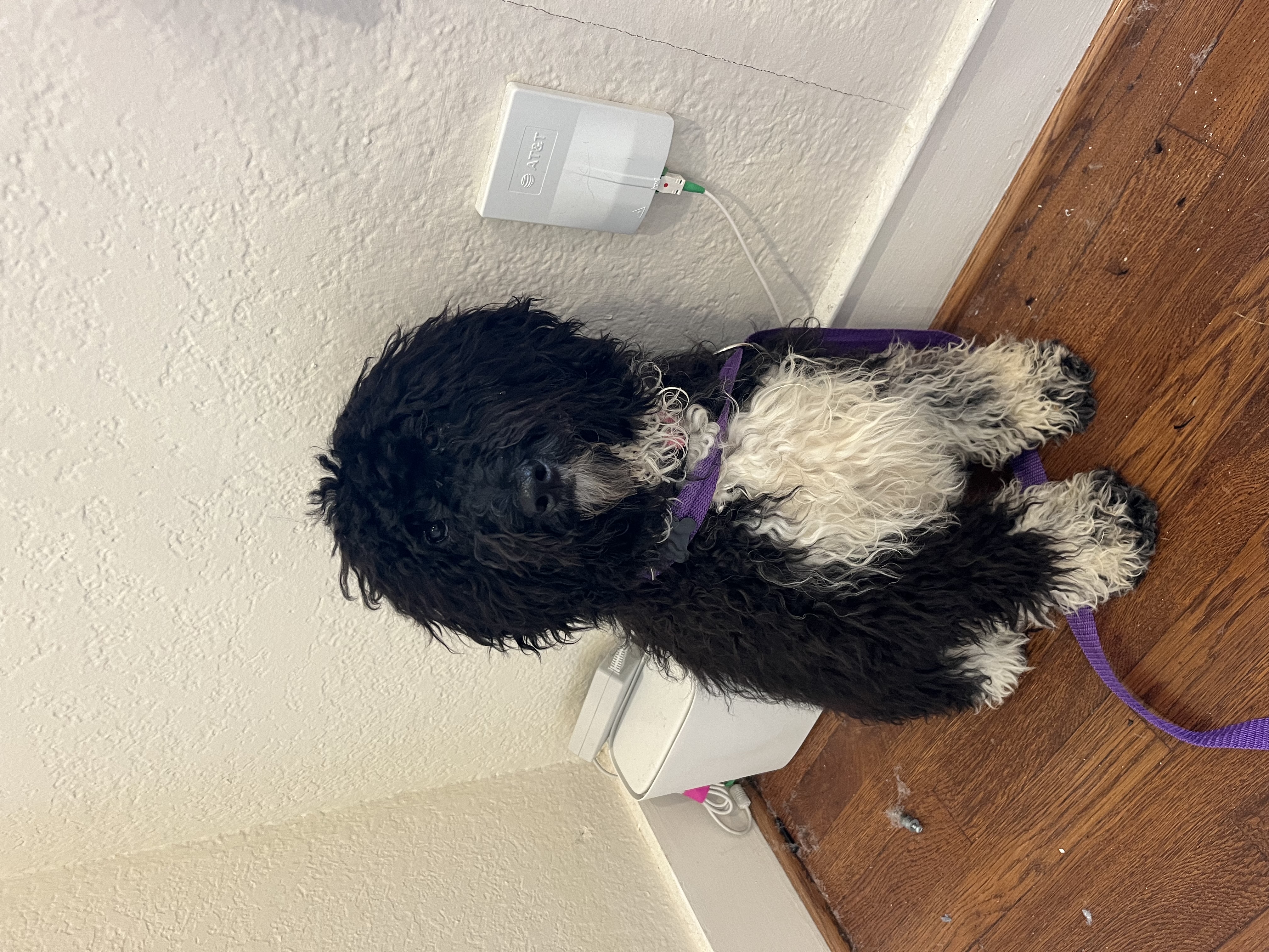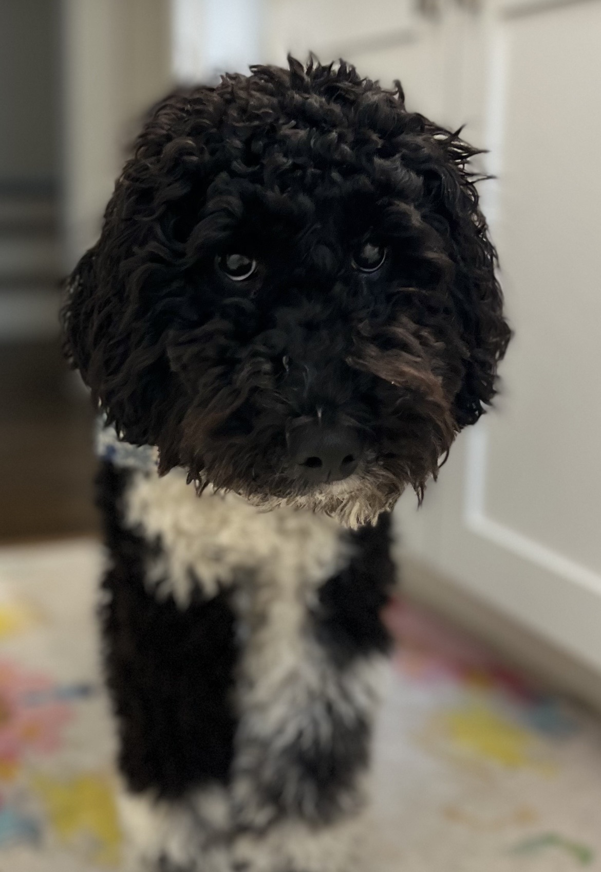 I’ve entered my “puppy era,” which means I’m curious and will happily explore anything left unattended (especially shoes). I don’t know many commands yet, but I do know my name and I’m eager to learn. Being a doodle, my coat and ears need regular brushing, grooming, and care to keep me healthy and prevent ear infections.
