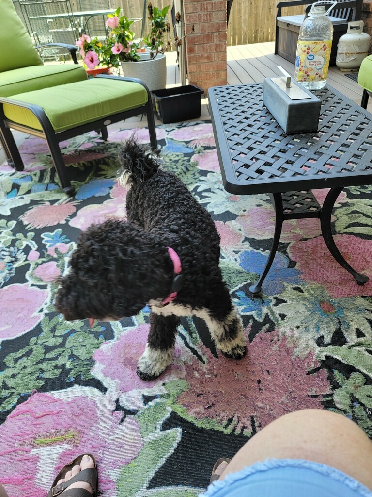 My mornings start around 7 AM with a quick potty break in my fenced backyard (my safe spot), then it’s breakfast time. After that, my playful side comes out — chasing balls, running speedy circles, and occasionally spotting a squirrel I just have to keep an eye on. I’m learning to walk on a leash, though sometimes I freeze up if there’s a loud noise, unfamiliar person, or another dog nearby. With time and patience, I know I’ll get more confident.