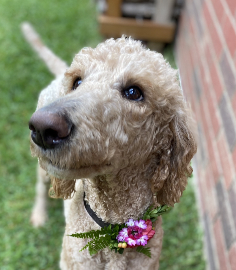 I’m crate trained and go in there sometimes, but I’m such a well behaved girl I don’t really need it. I’m learning to use a bell to tell you when it’s potty time. Basic commands are still a work in progress, but I do really well when you tell me to come. I’ve been known to counter surf, but I’m learning that’s a no-no. I still need to be reminded sometimes. I do great on a leash unless I decide I should walk in front of you.