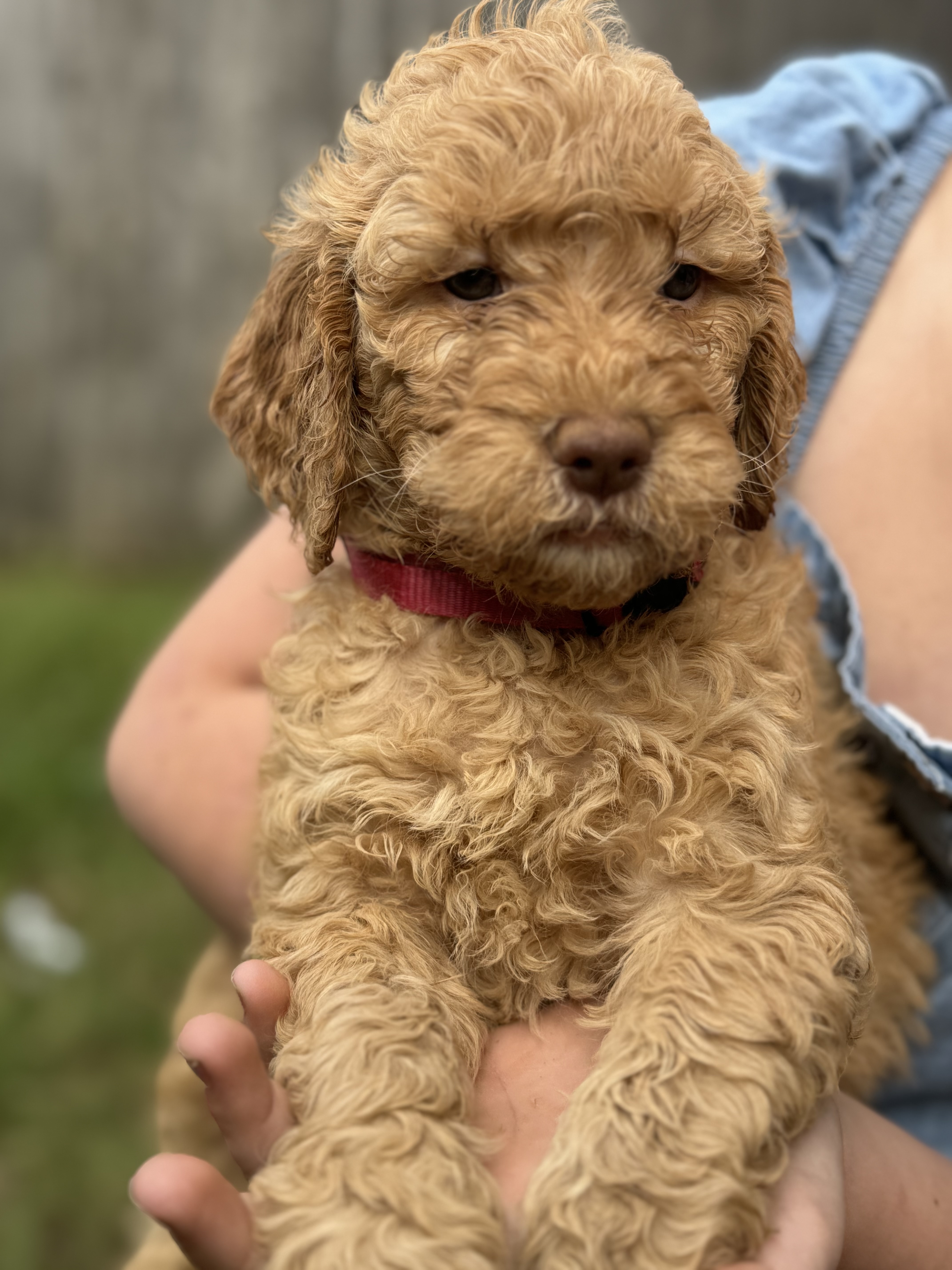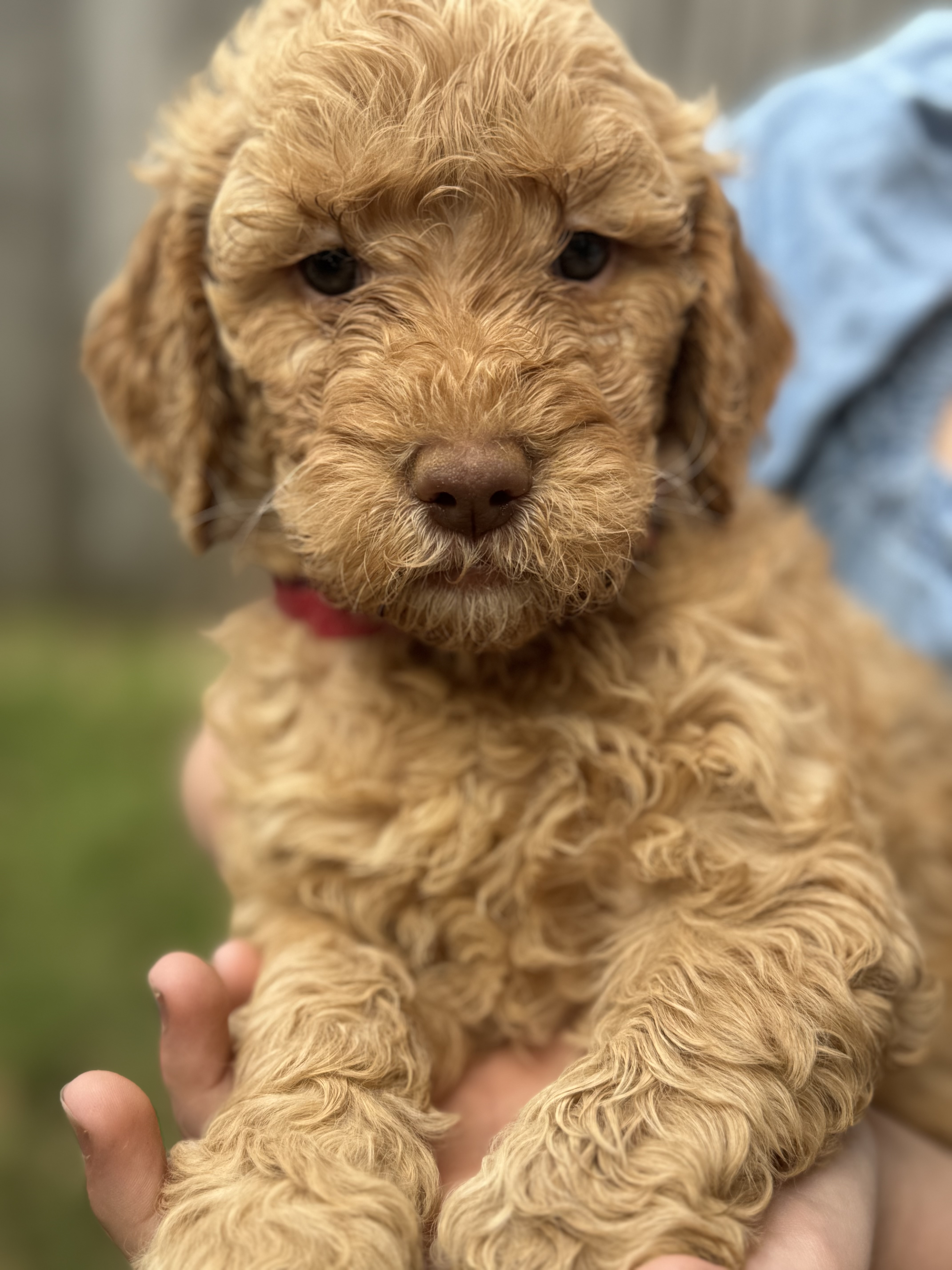 Hi, I’m Willow! I am an 8 week old female goldendoodle puppy! I am the smallest of my sibling group and look a lot like my sweet momma. My foster mom says that I am a little shy but very sweet. I love human attention and being cuddled. I like to play, but I am cautious and reserved around my big brothers. My foster human siblings love to cuddle me and I would adore being someone’s cuddle bug!