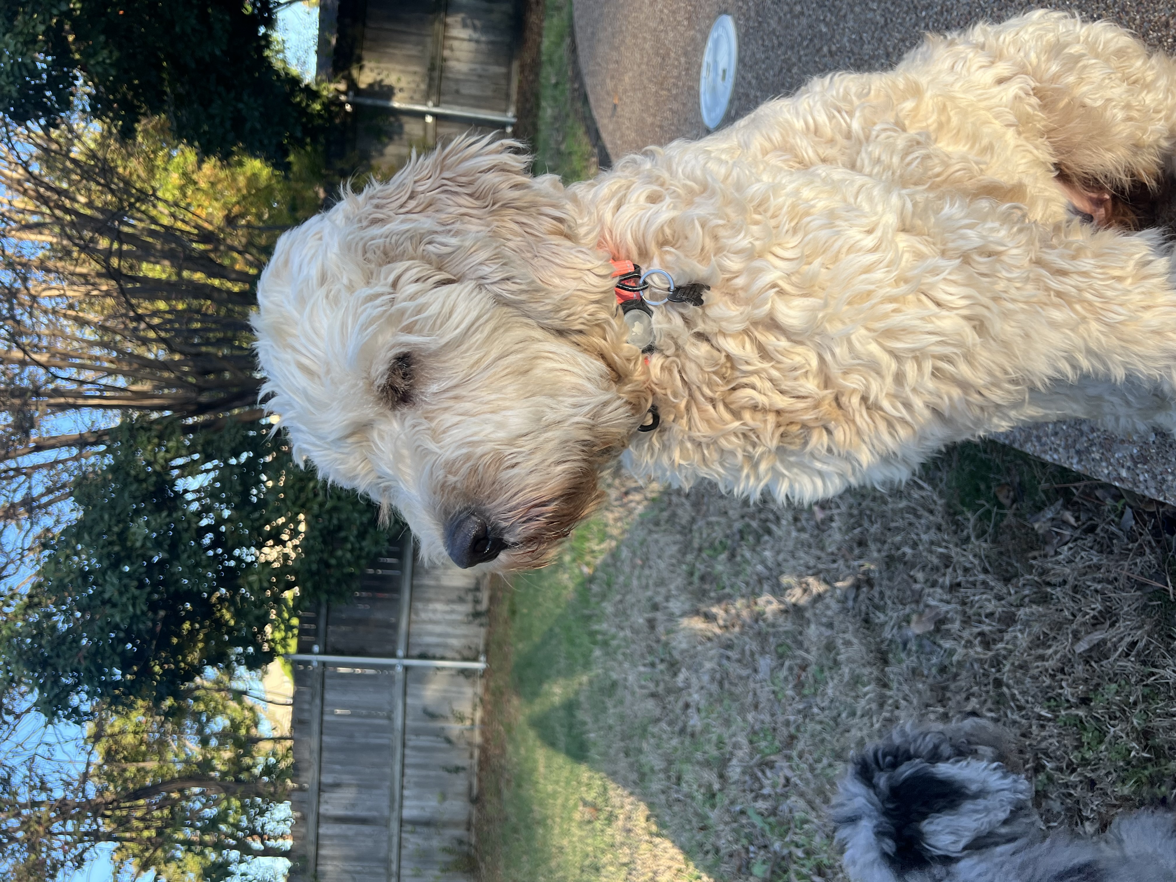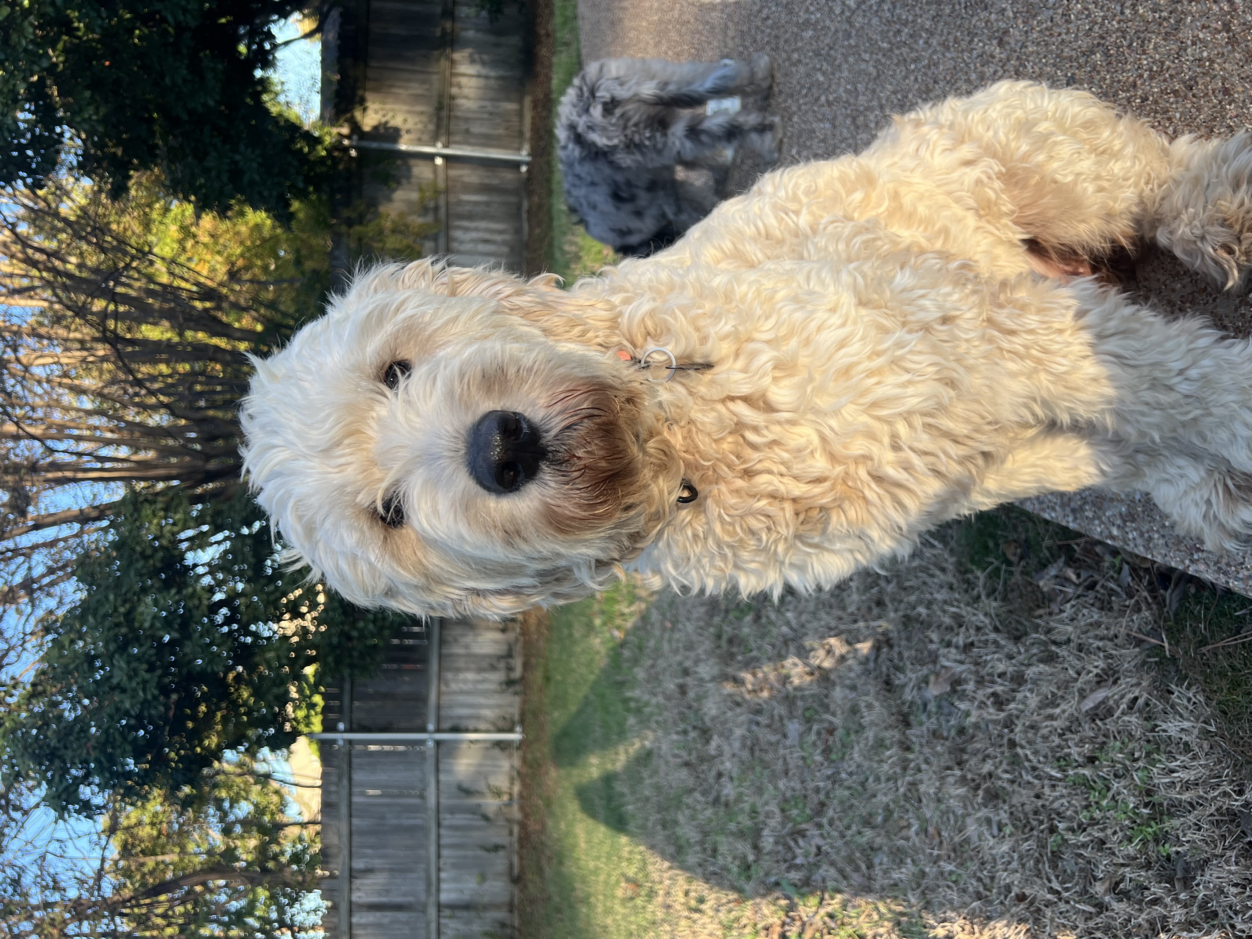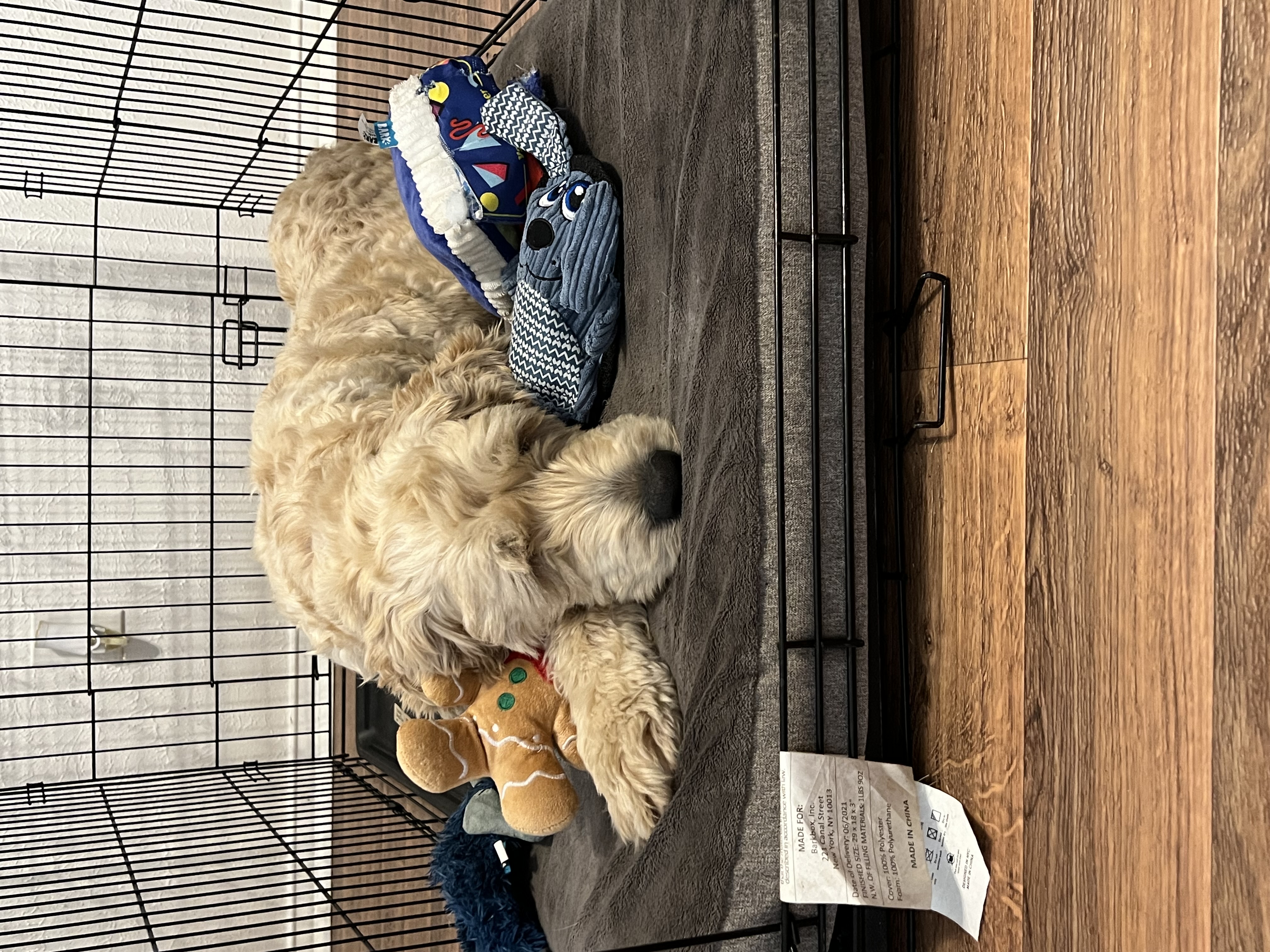 One of my favorite things is carrying soft squeaky toys around like treasures, then curling up with them in my crate. I’m proud to say I’m crate trained, and it’s my cozy little retreat when I need a moment. But once I know you, I’m happiest stretched out nearby, quietly keeping you company. My days usually start early with breakfast and a quick trip outside, then I settle in close to my foster mom while she works. I like to step out a few times to sniff around, though I usually don’t need to potty again until later in the afternoon. Evenings mean dinner and a walk. I’m still learning the whole leash thing, and sometimes it makes me a bit nervous, but I’m getting braver every day.