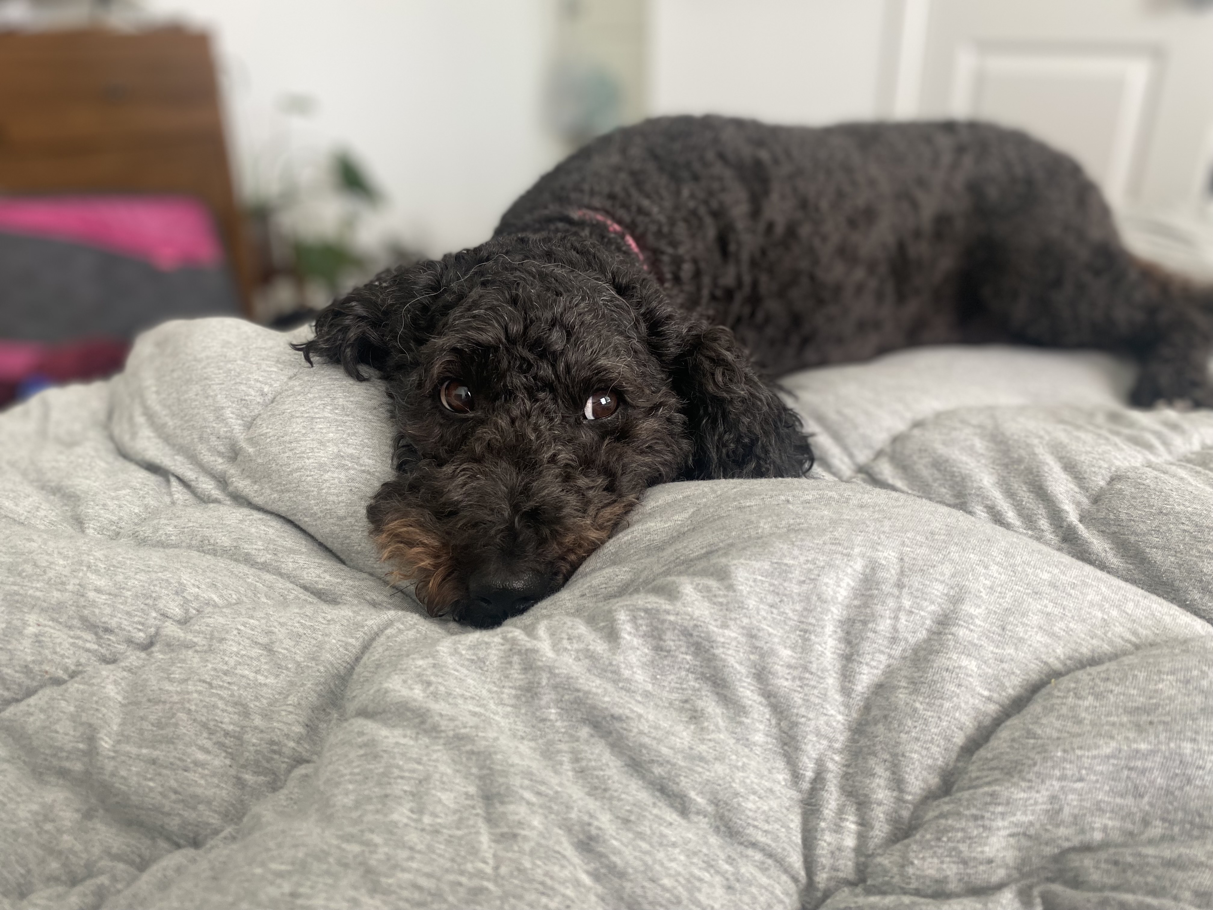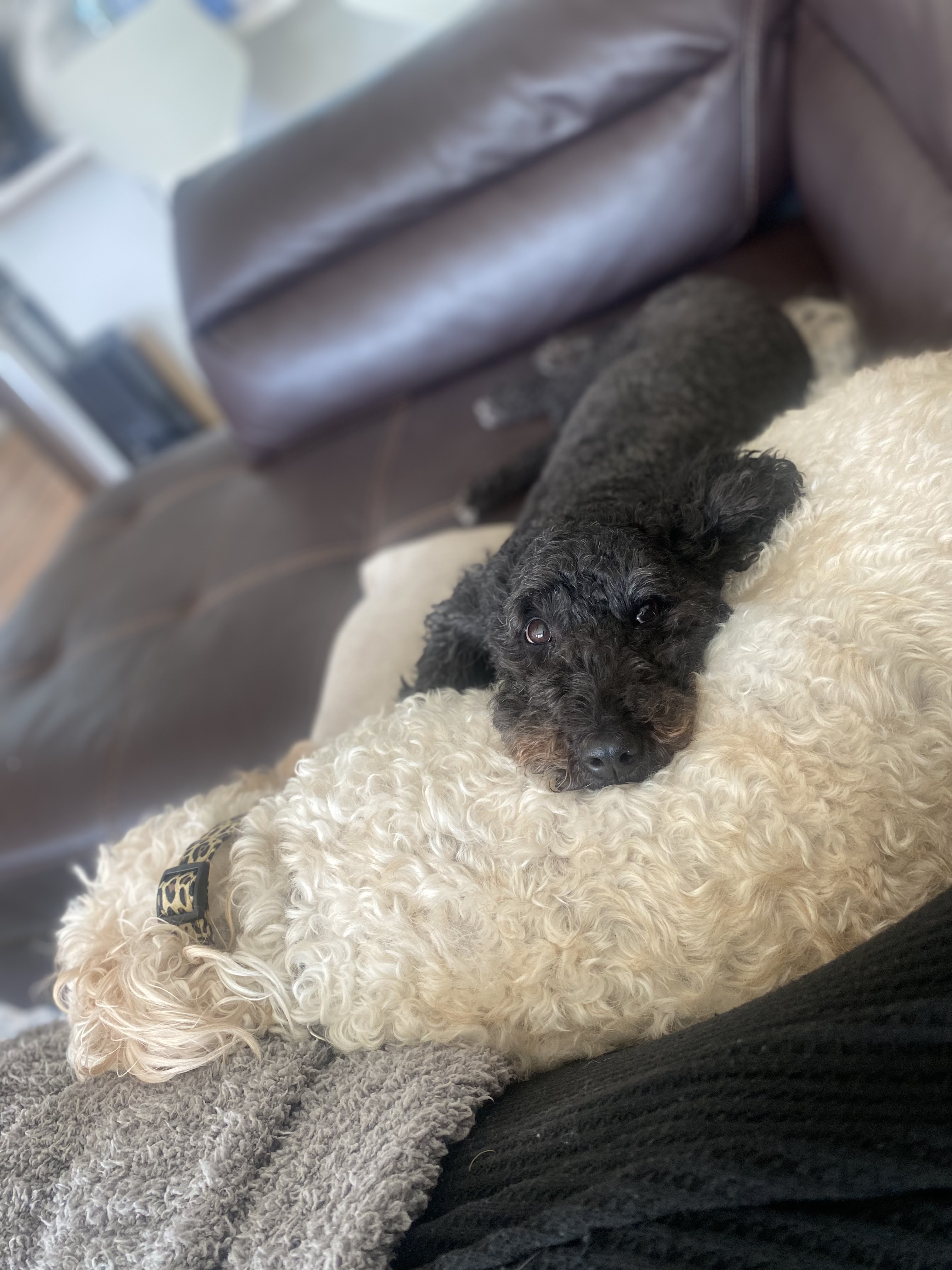 Hi, my name is Zoey and I’m a 5 year old Female Goldendoodle. I weigh about 31lbs and I’m a good girl.